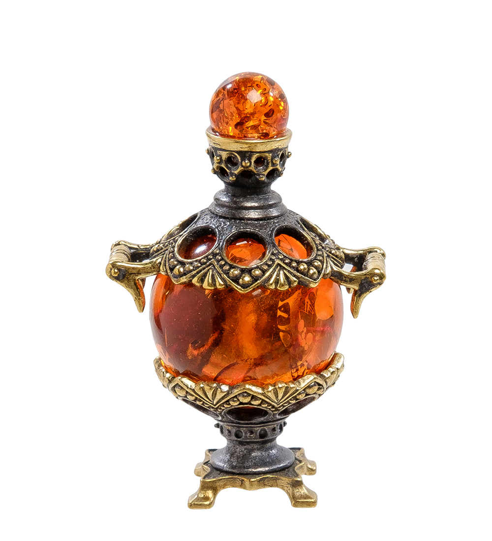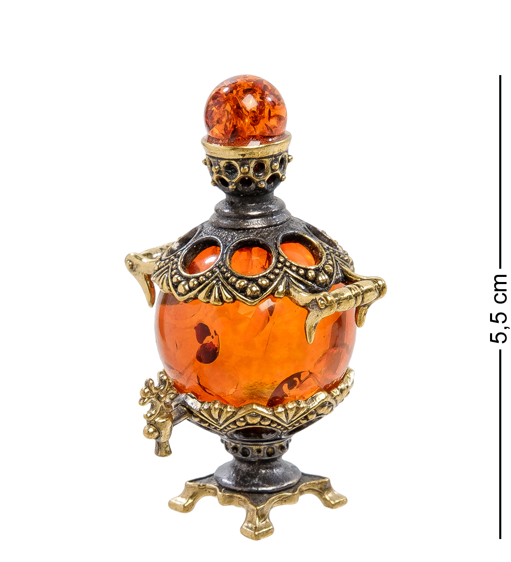 Am-2182 фигурка самовар расписной (латунь, янтарь)