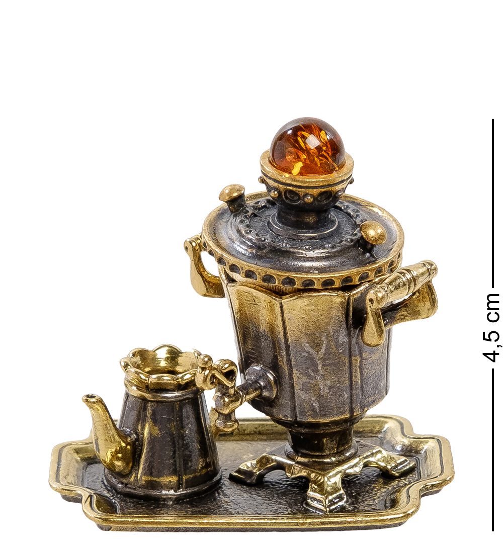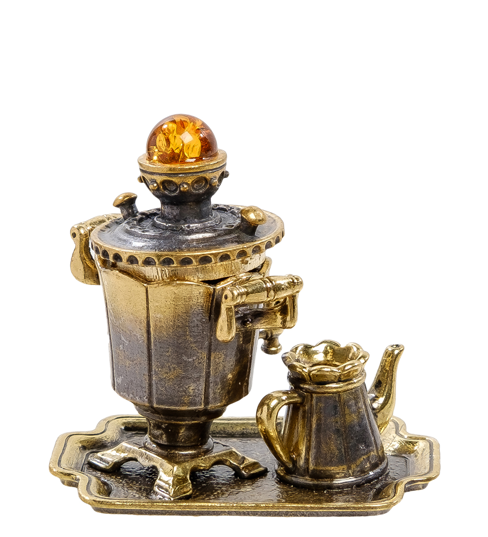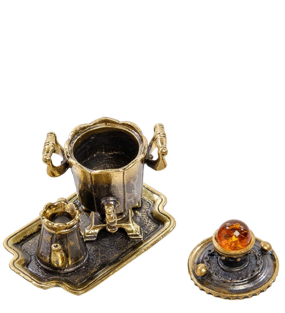 Am-2183 фигурка самовар-чайный сервиз (латунь, янтарь)