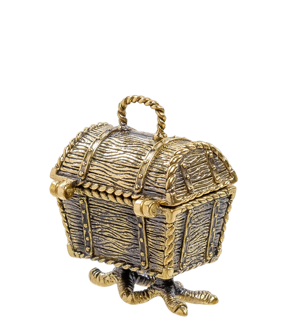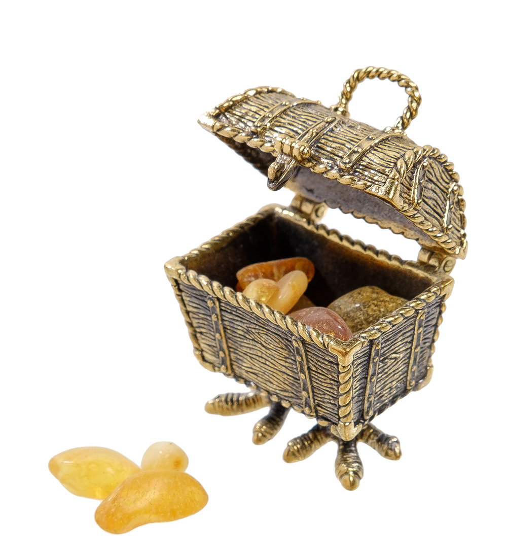 Am-2202 фигурка сундук на курьих ножках (латунь, янтарь)