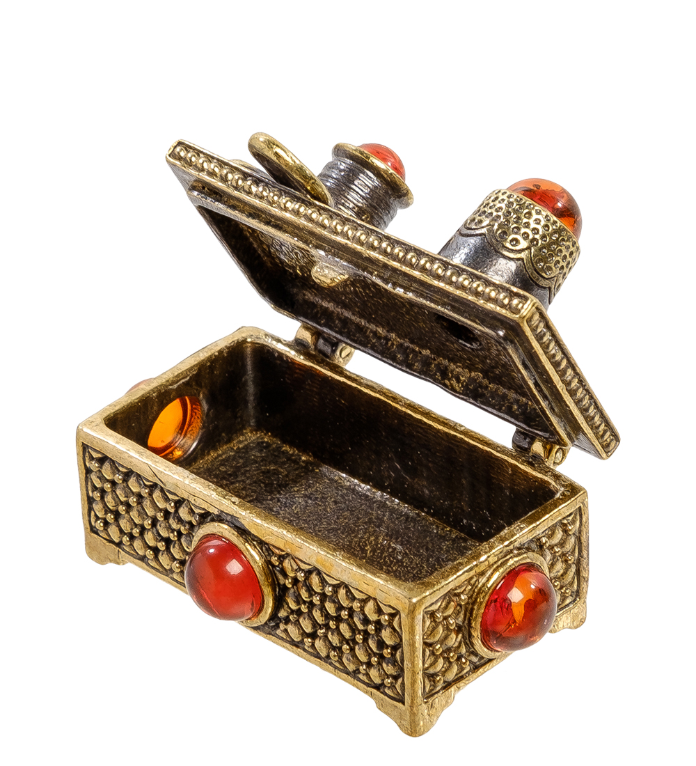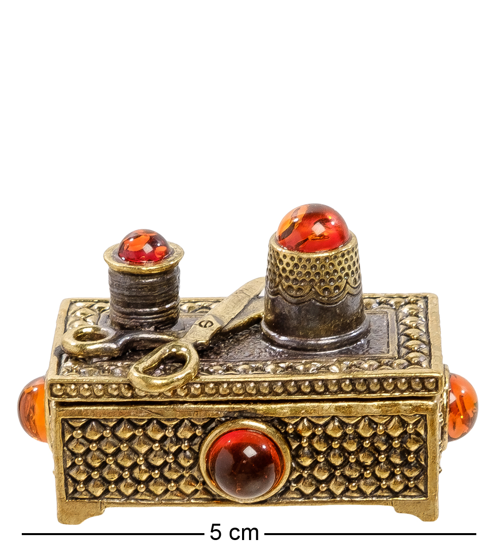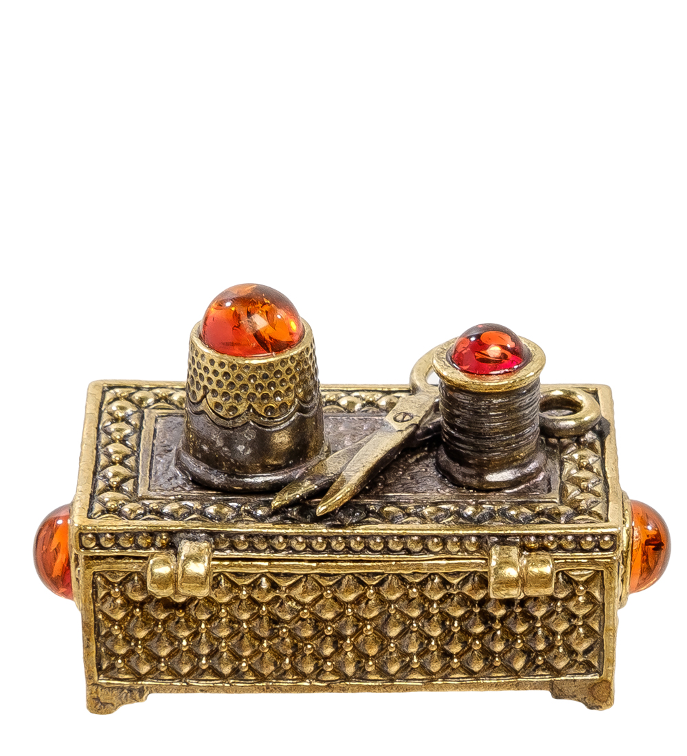 Am-2204 фигурка сундук-швейная набор под иголоки (латунь, янтарь)
