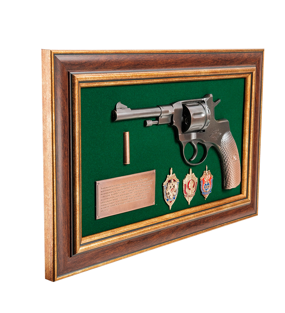 Пк-217 панно с пистолетом наган со знаками фсб в под. уп. 25х37