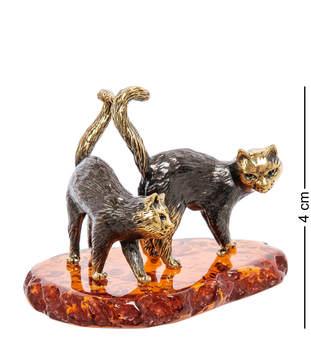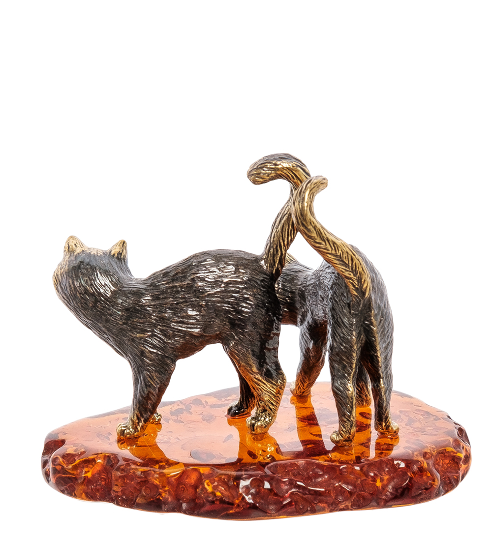 Am-2220 фигурка парочка котов (латунь, янтарь)