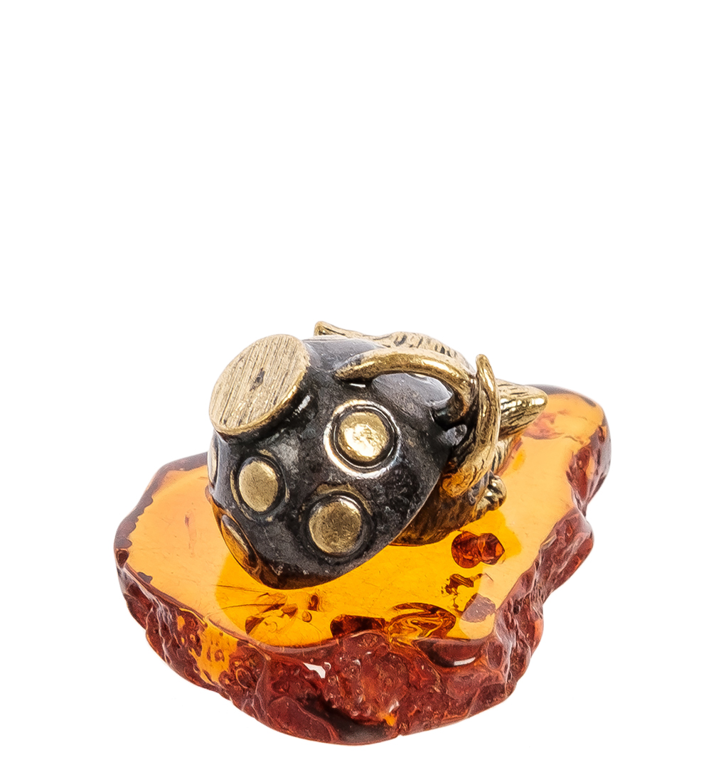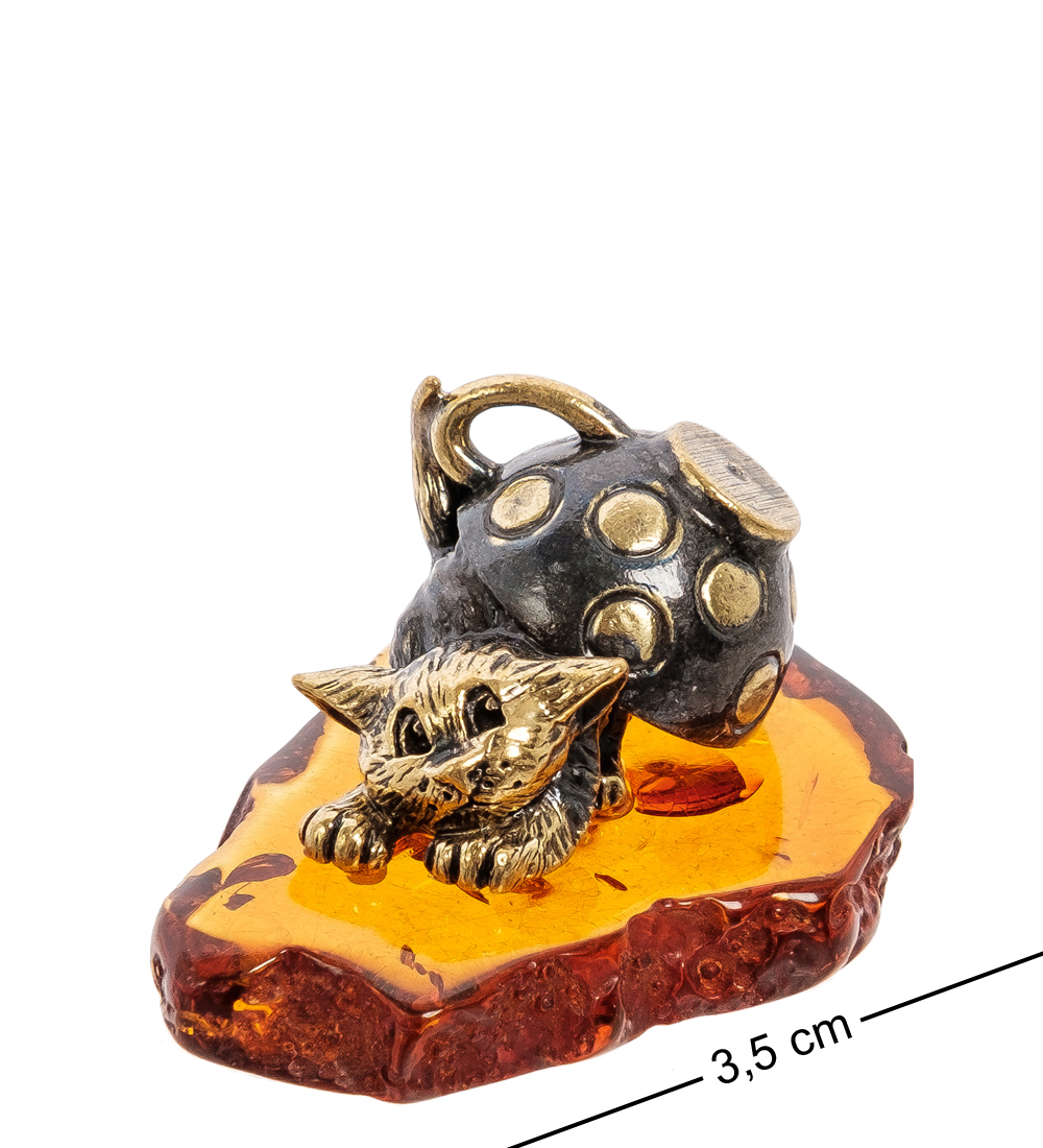 Am-2226 фигурка котик под чашкой (латунь, янтарь)