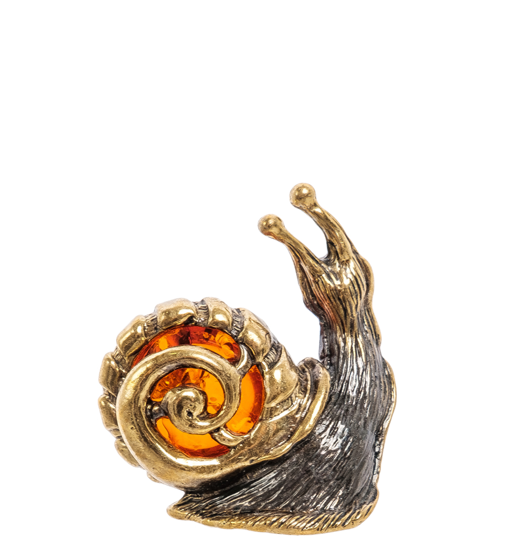 Am-2243 фигурка улитка ажурная мал. (латунь, янтарь)