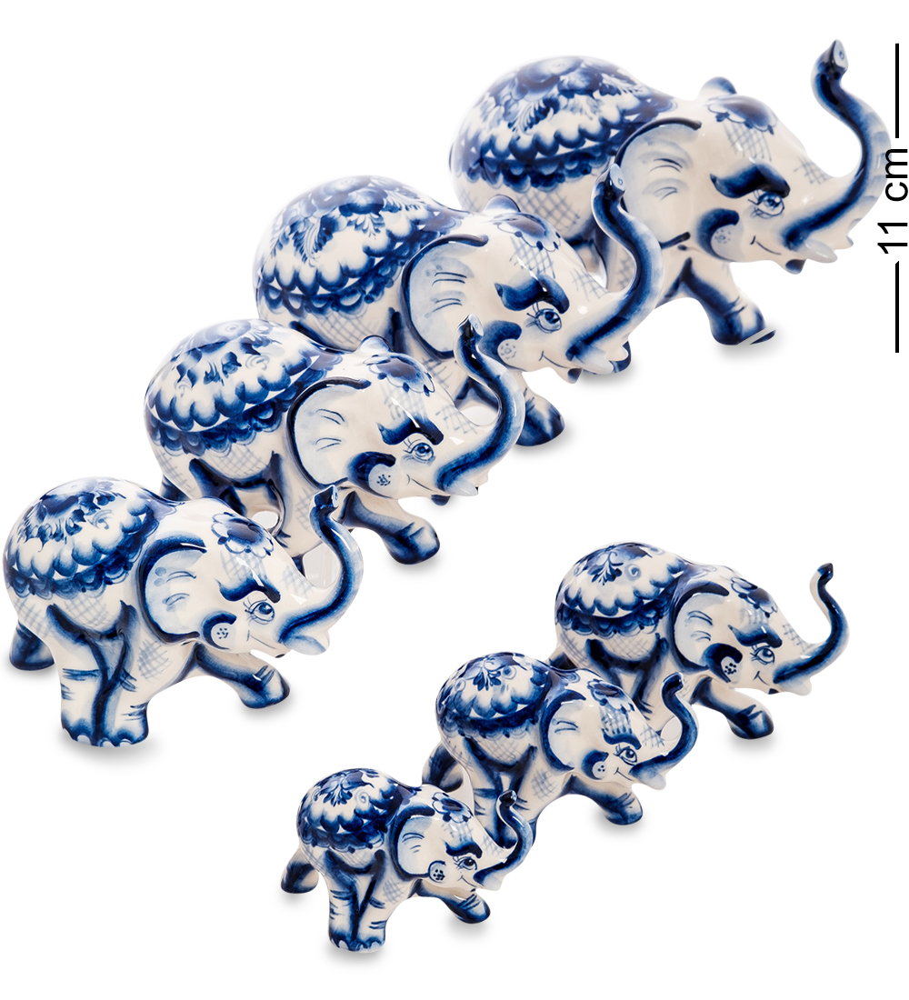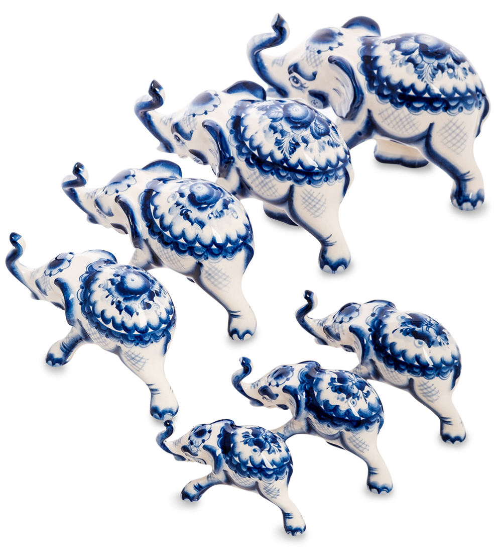 Гл-531 фигурка слон набор 7шт. (гжельский фарфор)