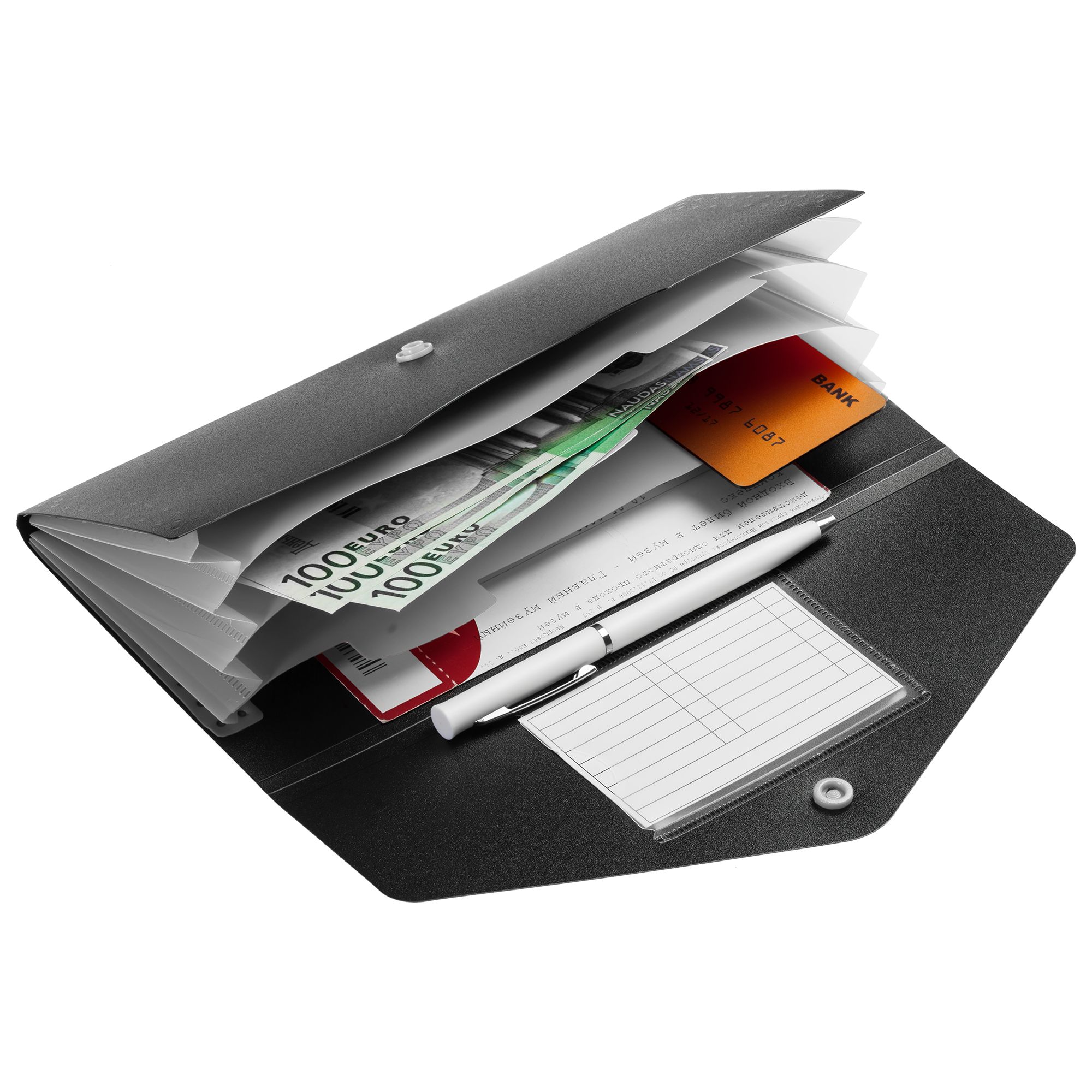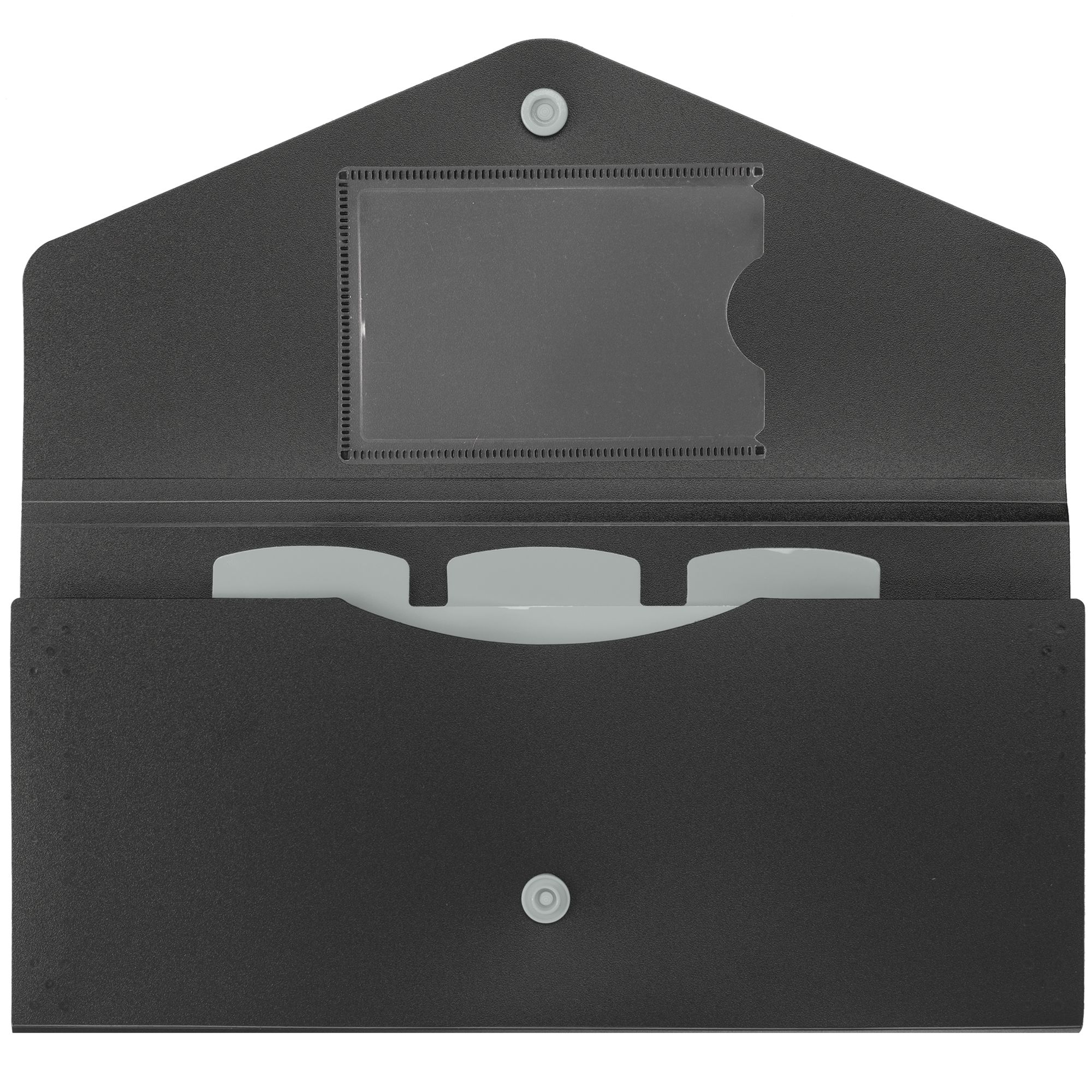 Органайзер для путешествий envelope, черный с серым. Размеры 23x11,6х1,1 см Материал полипропилен Вес (1 шт.) 52,47 г Транспортная упаковка 62,0x53,0x36,0 см Вес 17,00 кг Объем упаковки 0,118 м? Количество в упаковке 324 шт. Виды нанесения T1-Тиснение бесцветное Большое отделение с тремя разделителями Карман для кредитной карты или визитки Закрывается на кнопку. Поставляется в индивидуальном пакете с липким краем.