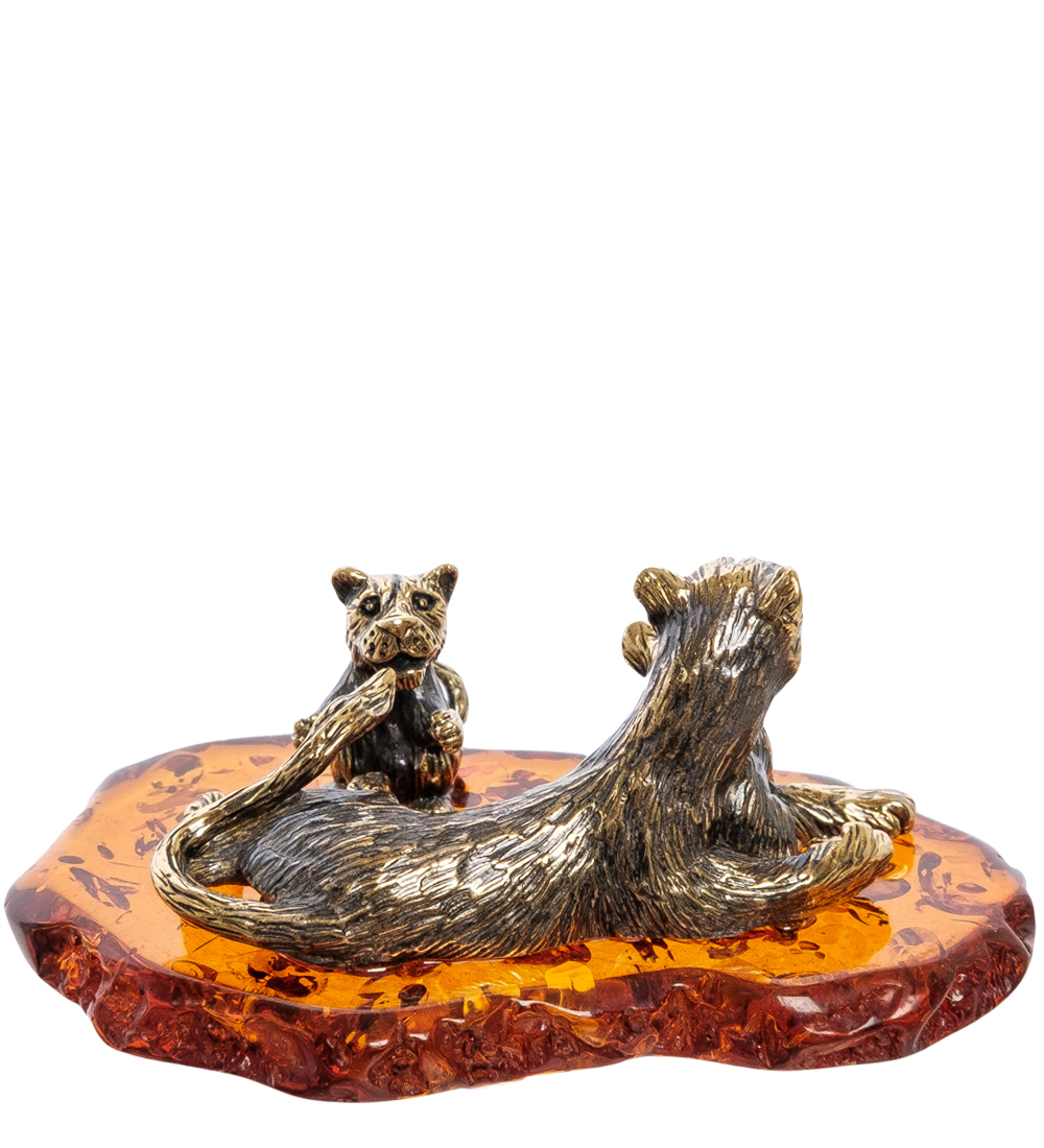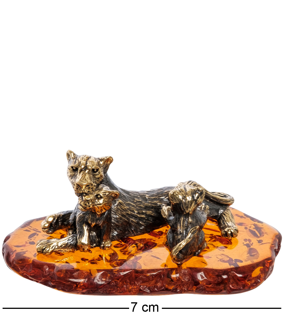 Am-2255 фигурка львица с малышами (латунь, янтарь)