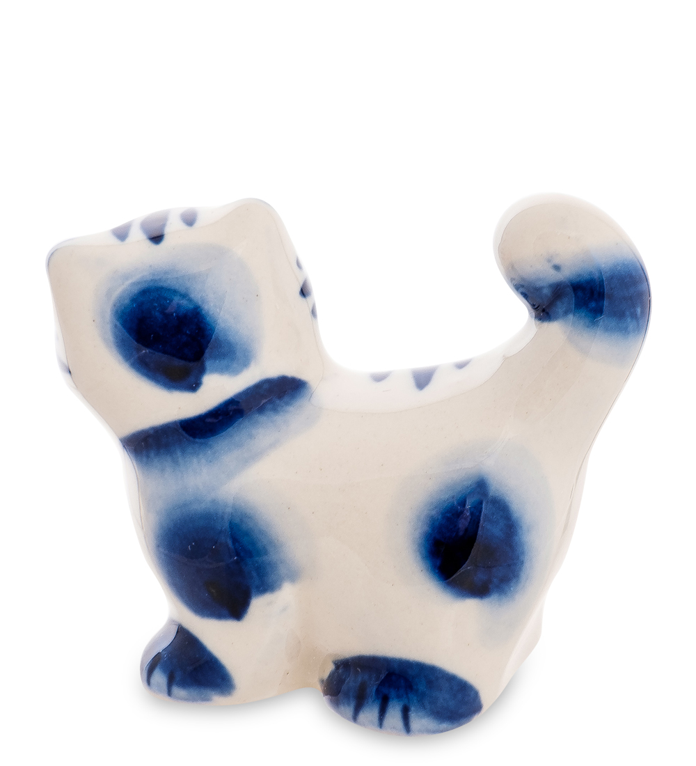 Гл-608 фигурка кот-хвост нов. (гжельский фарфор)