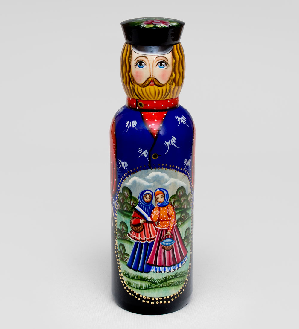 Мр-25/31 футляр для бутылки василий. Параметры товара Материал: Дерево липа, краски,лак Страна производства: Россия Размеры изделия Длина: 9 см; Ширина: 9 см; Высота: 33 см; Вес: 0.33 кг. Размеры упаковки Длина: 9 см; Ширина: 9 см; Высота: 33 см; Вес: 0.33 кг.
