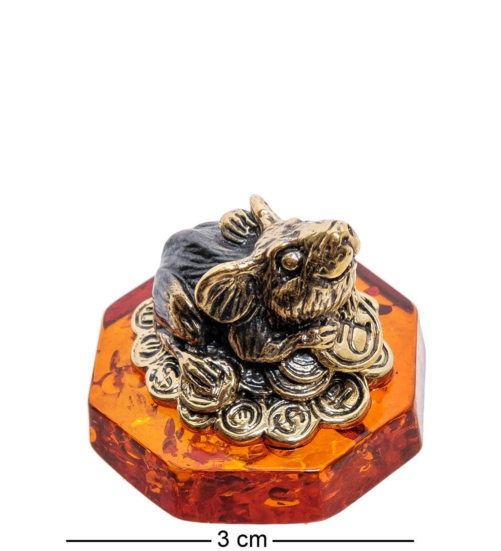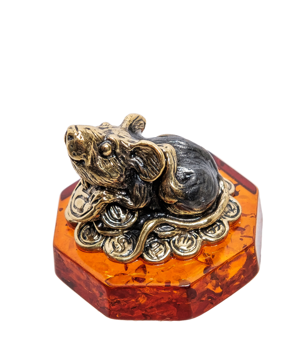 Am-2272 фигурка мышь фен-шуй на монетках (латунь, янтарь)
