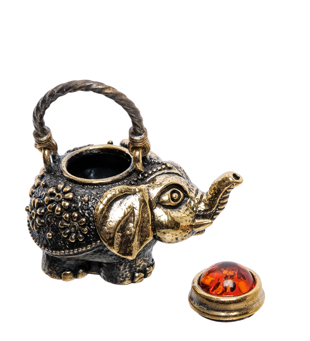 Am-2274 фигурка чайник слон (латунь, янтарь)