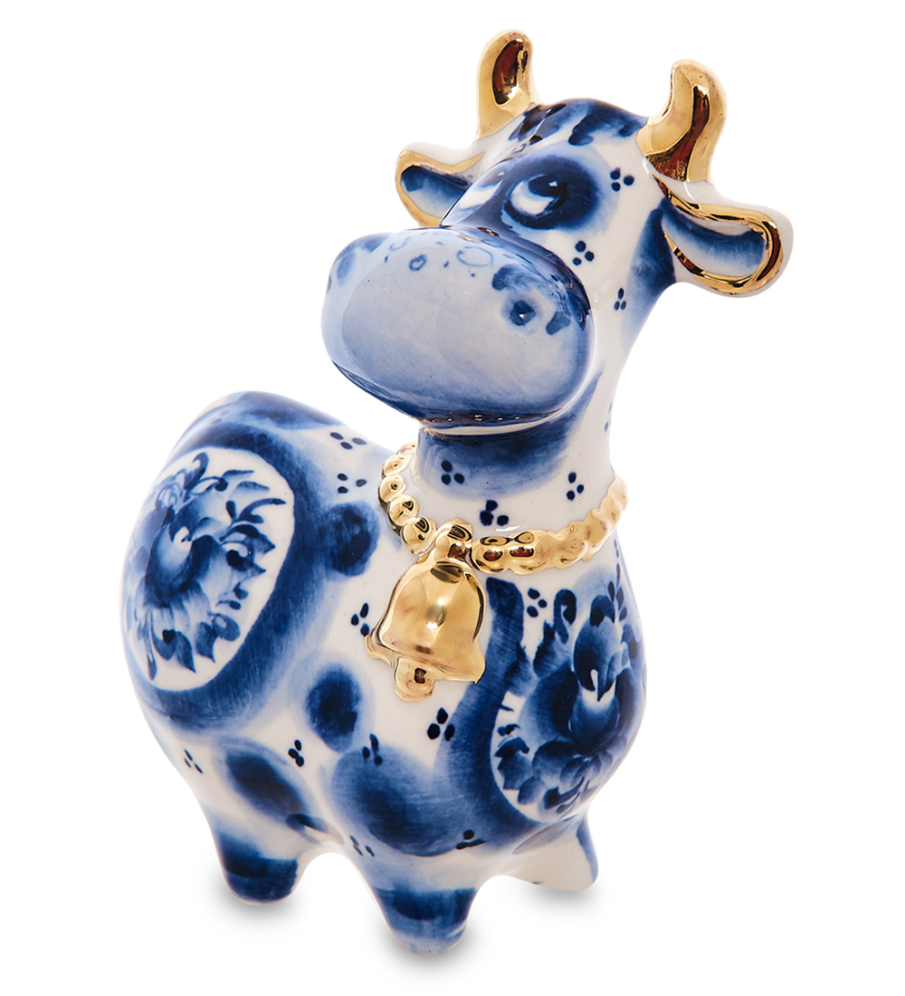 Гл-653 фигурка корова с колокольчиком золото (гжельский фарфор). Параметры товара Страна производства: Россия