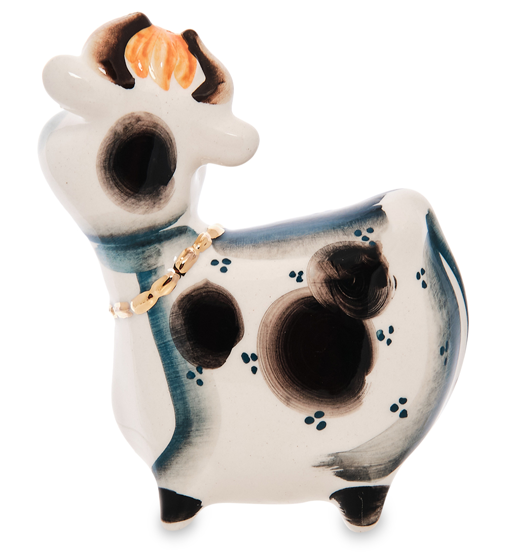 Гл-657 фигурка корова с колокольчиком цв. золото (гжельский фарфор). Параметры товара Страна производства: Россия