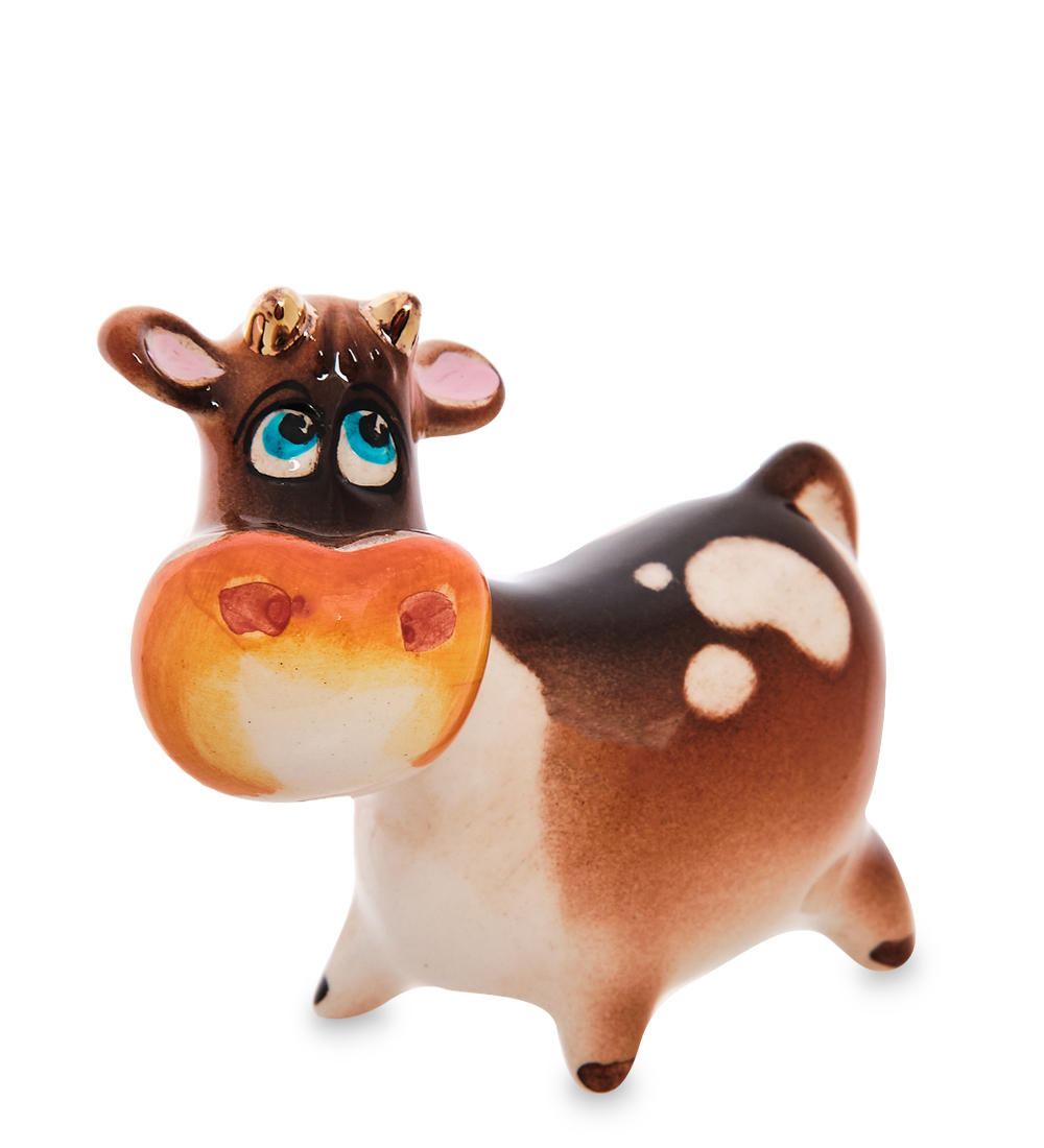 Гл-665 фигурка бычок гаврюша цв. золото (гжельский фарфор)