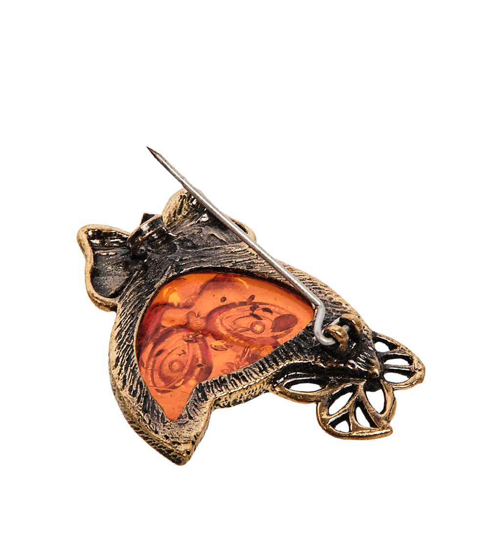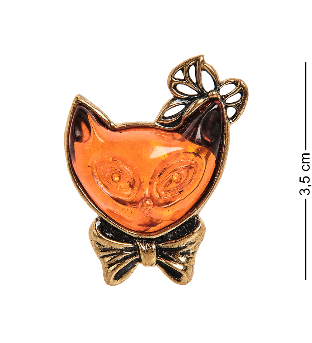 Am-2342 брошь кошка кити (латунь, янтарь)