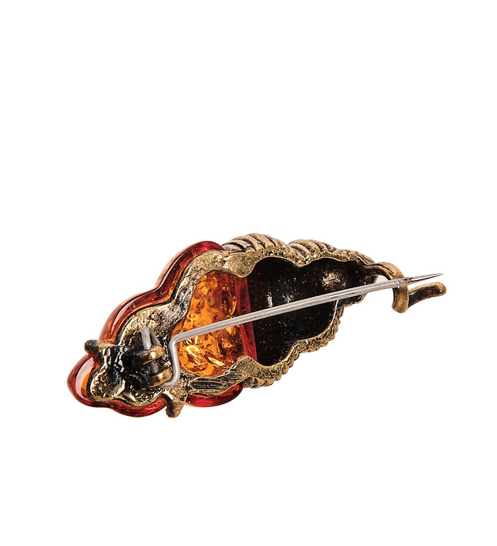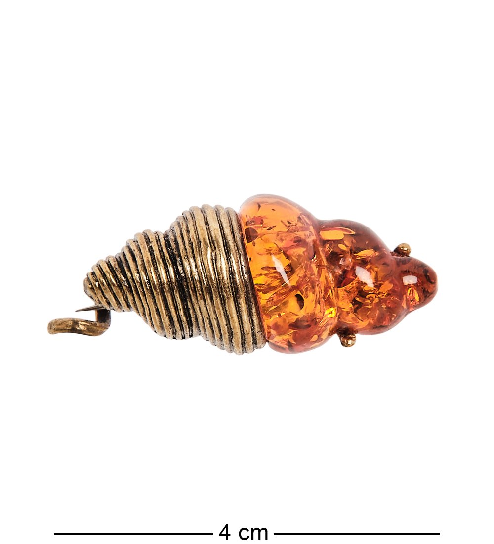 Am-2380 брошь ракушка (латунь, янтарь)