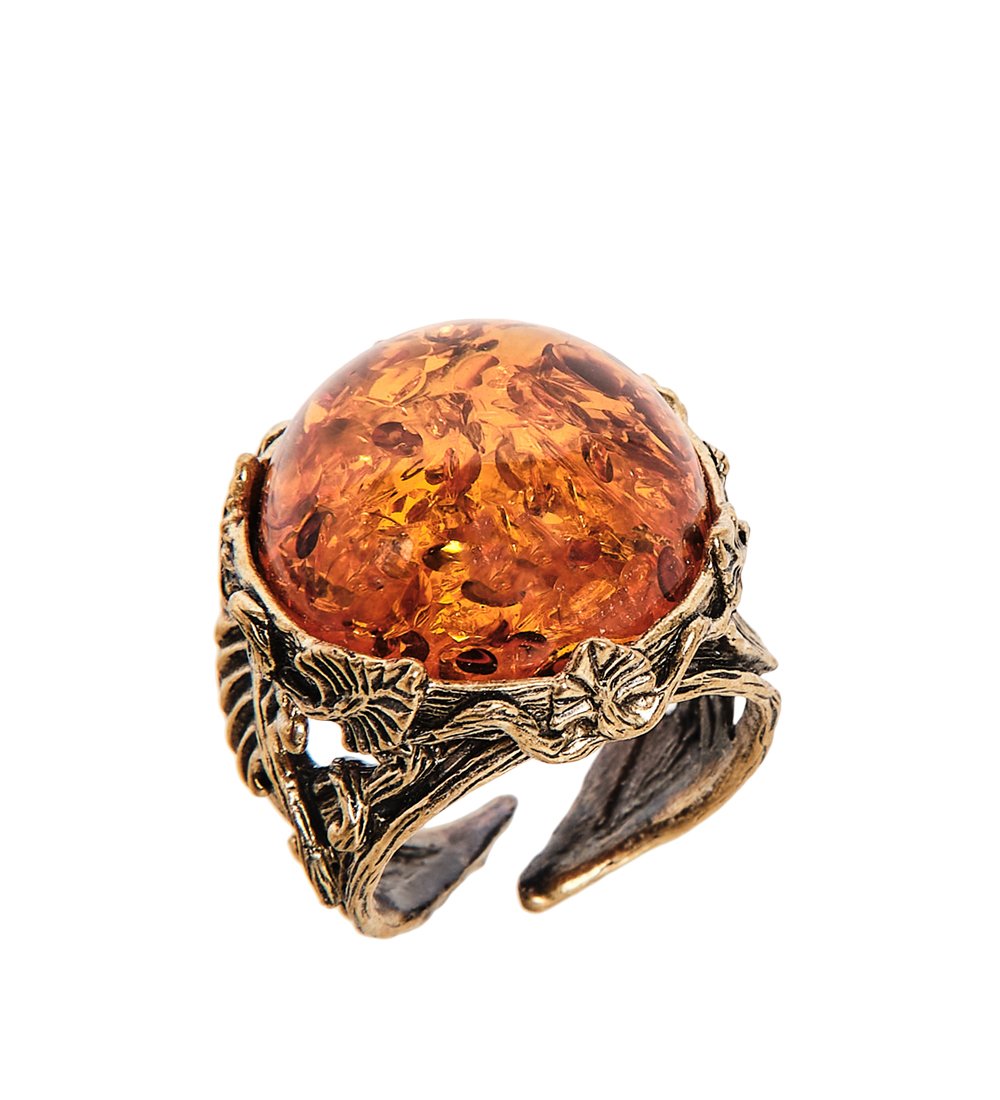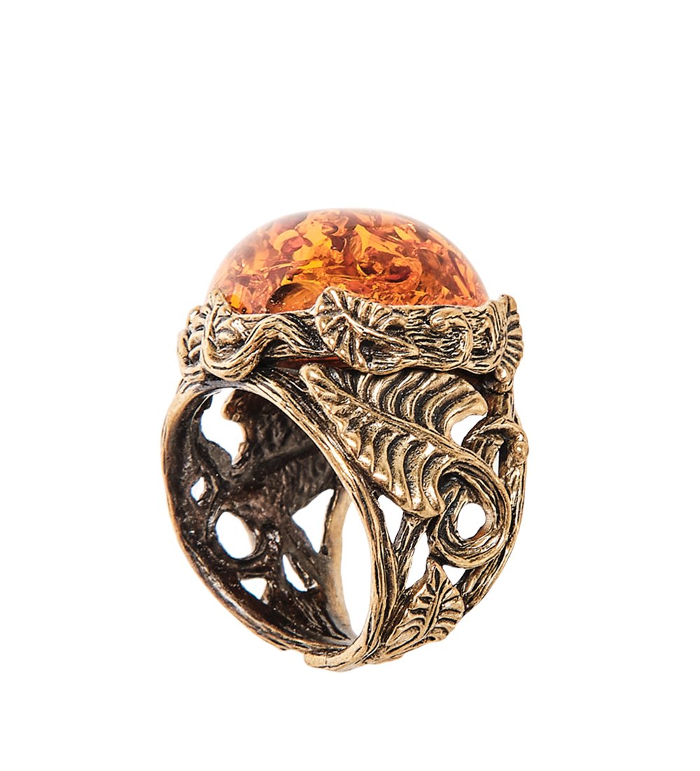Am-2426 кольцо виноградная лоза (латунь, янтарь)