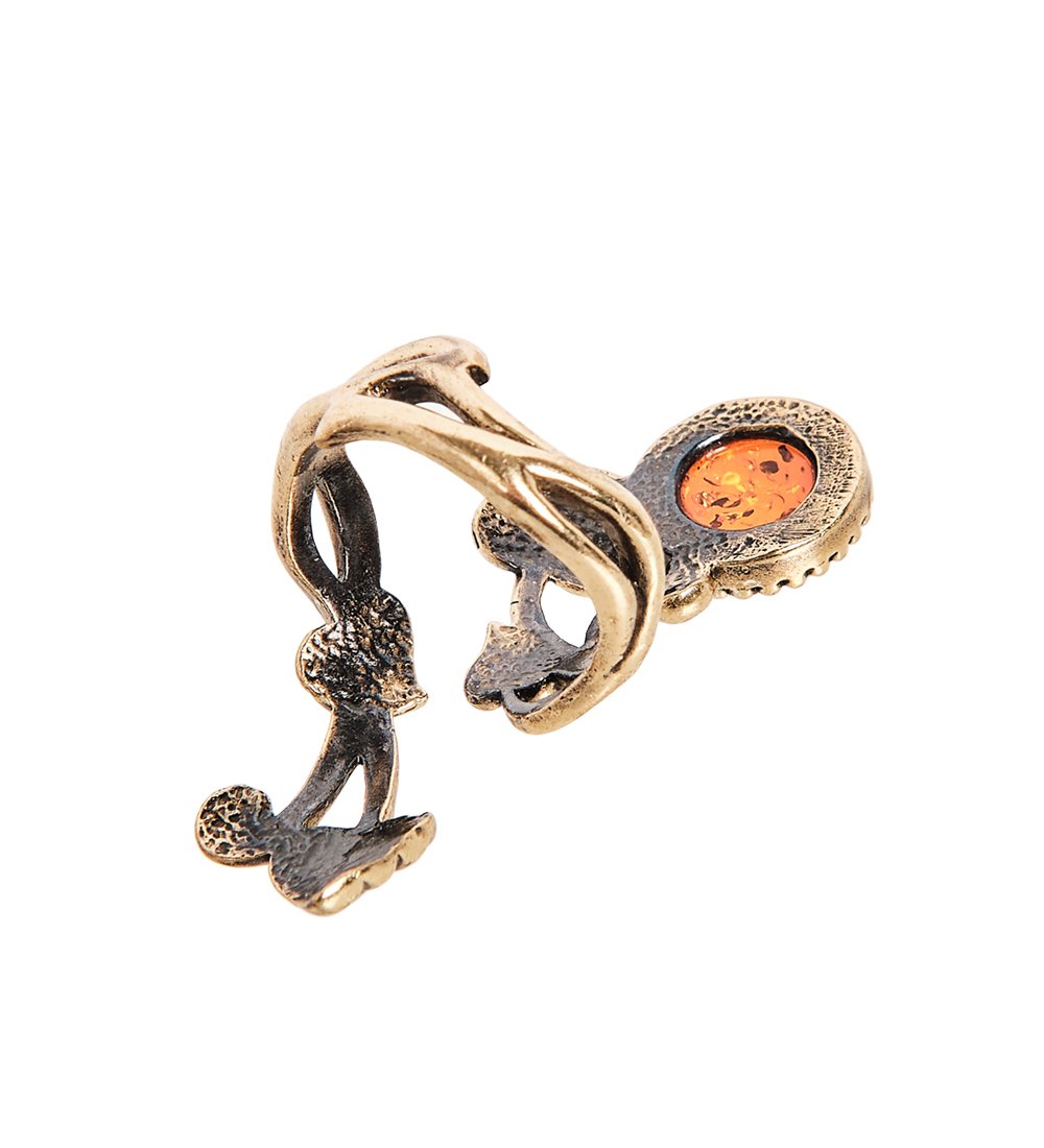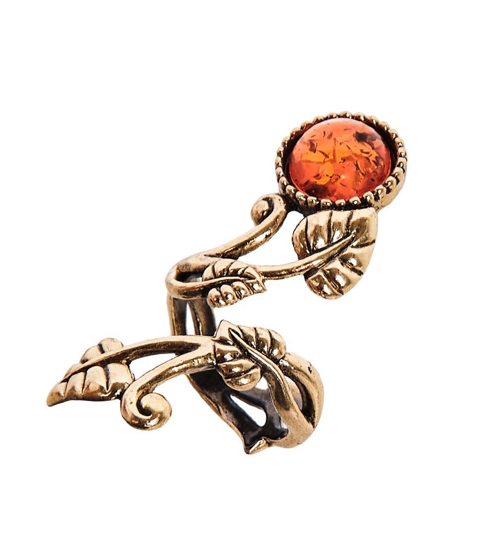 Am-2432 кольцо вьюнок сирени (латунь, янтарь)