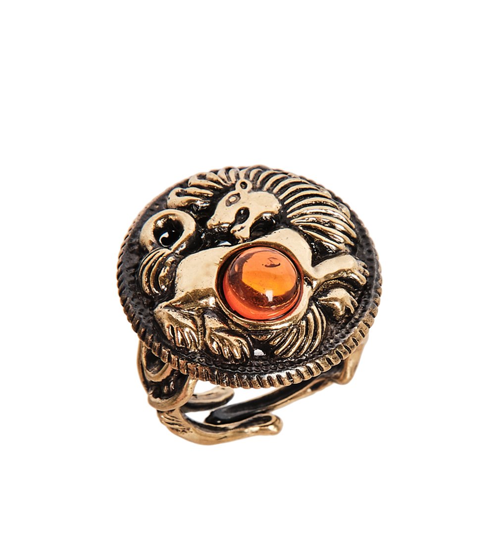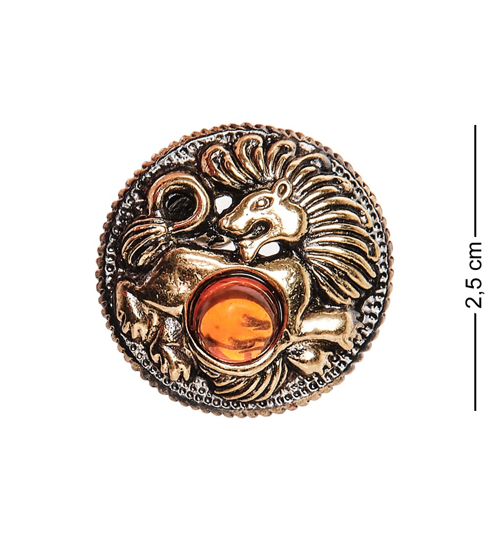 Am-2443 кольцо зодиак лев (латунь, янтарь)