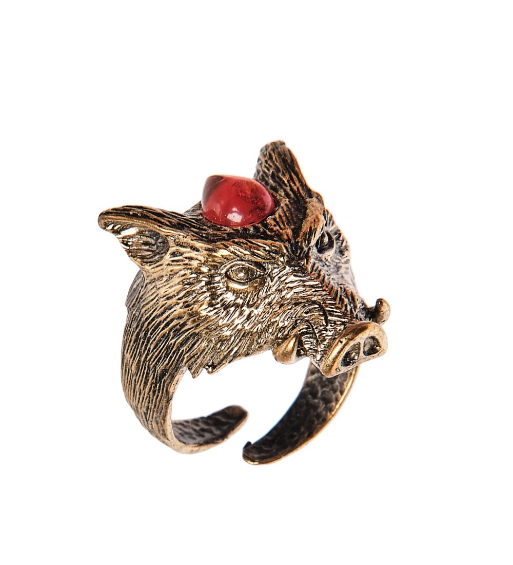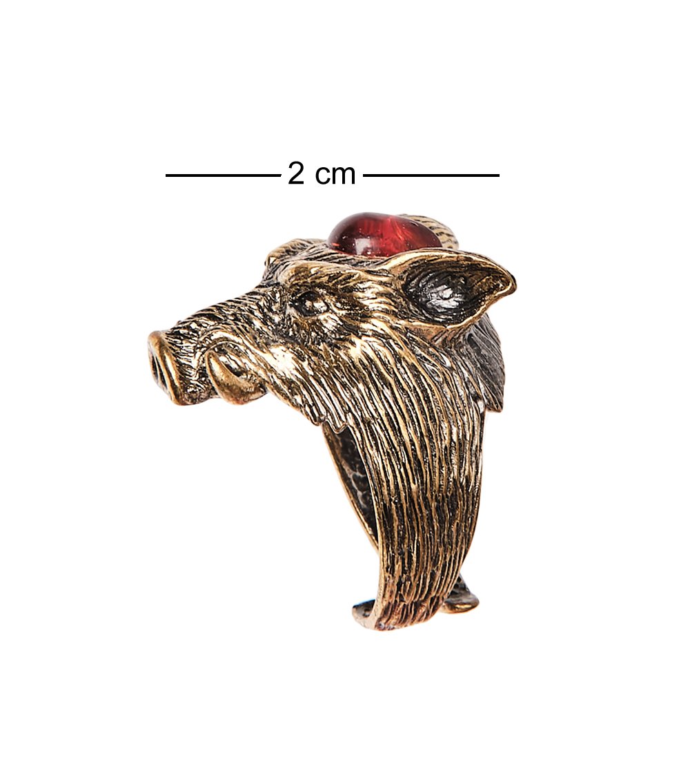 Am-2451 кольцо кабан (латунь, янтарь)