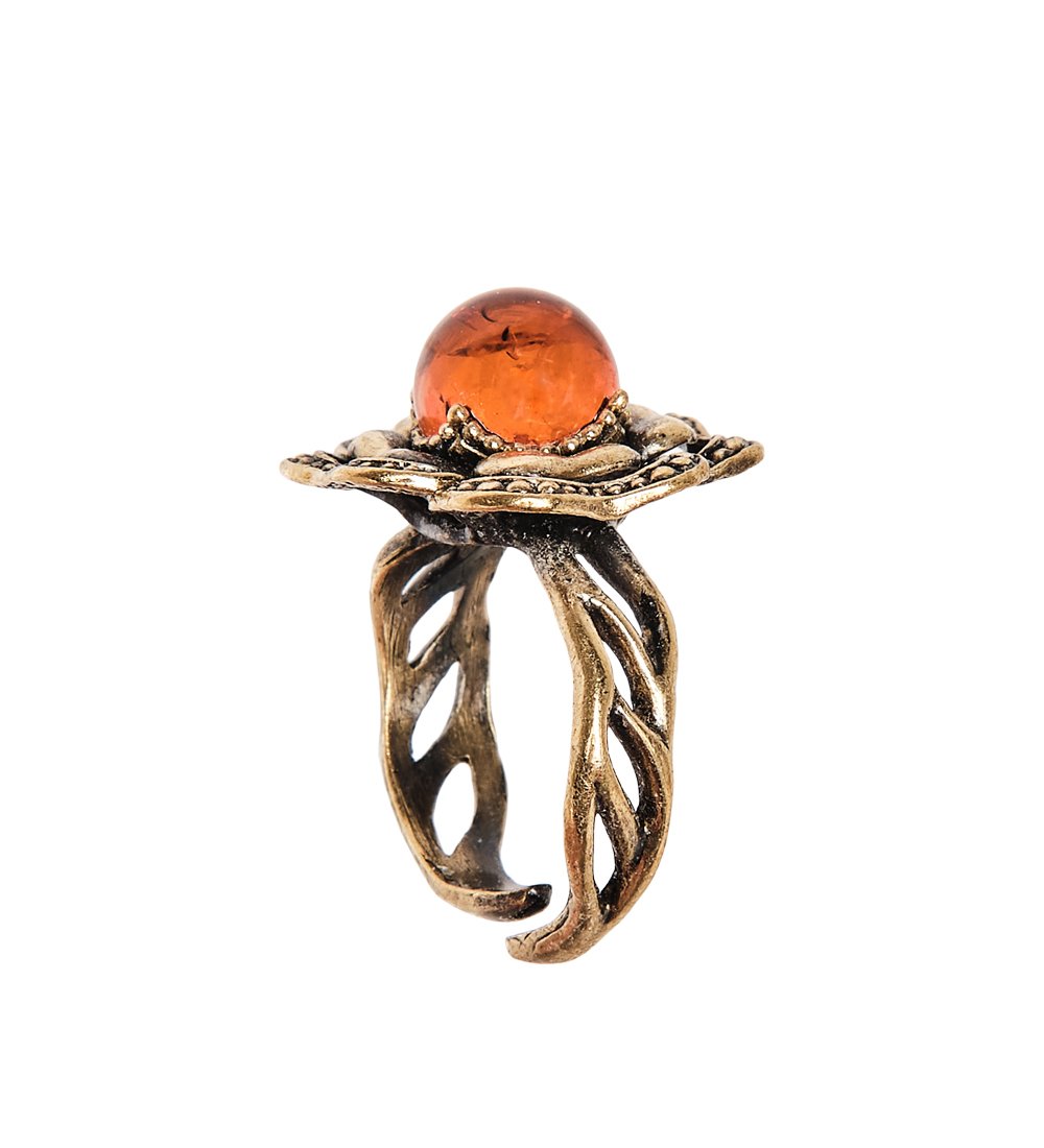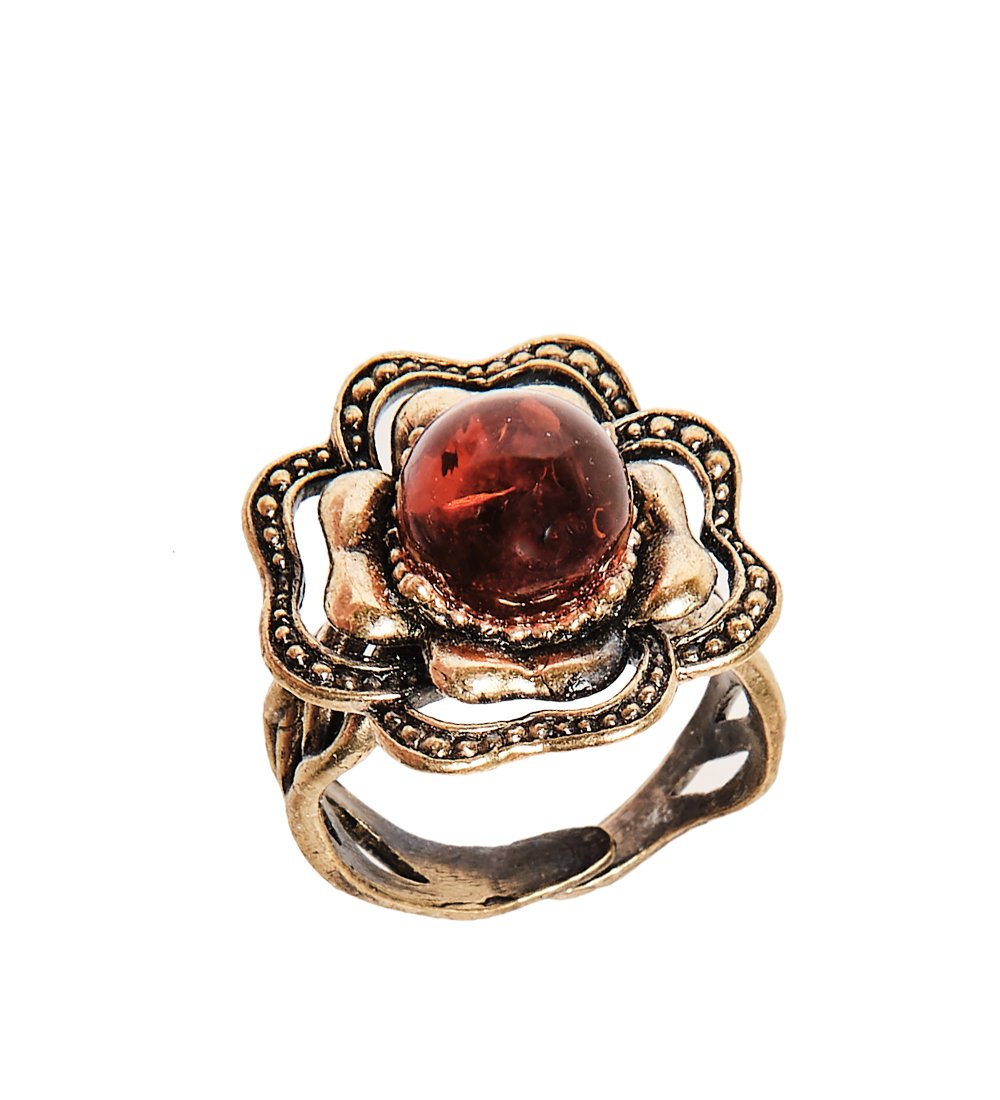 Am-2453 кольцо камелия шар (латунь, янтарь)
