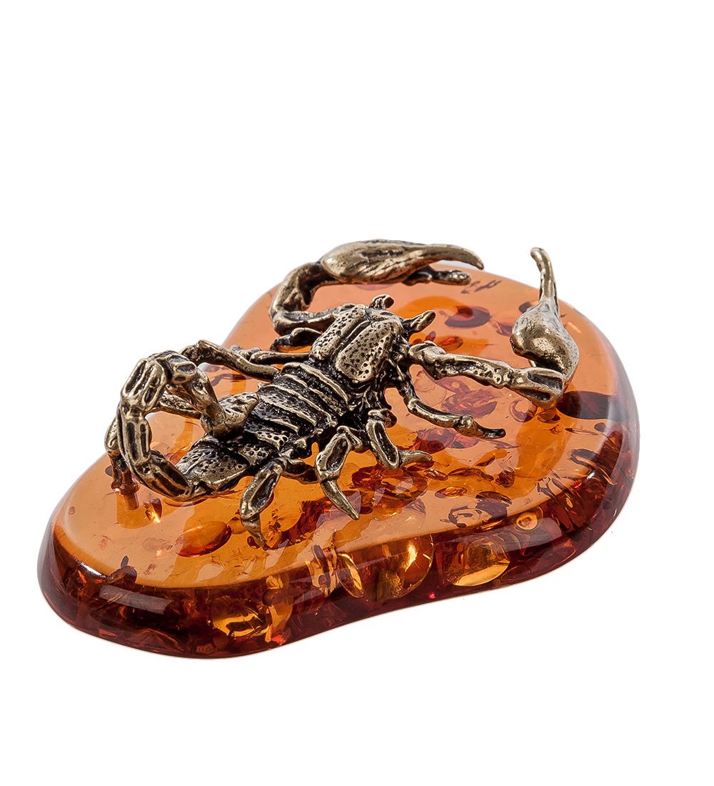 Am-547 фигурка скорпион на подставке (латунь, янтарь)