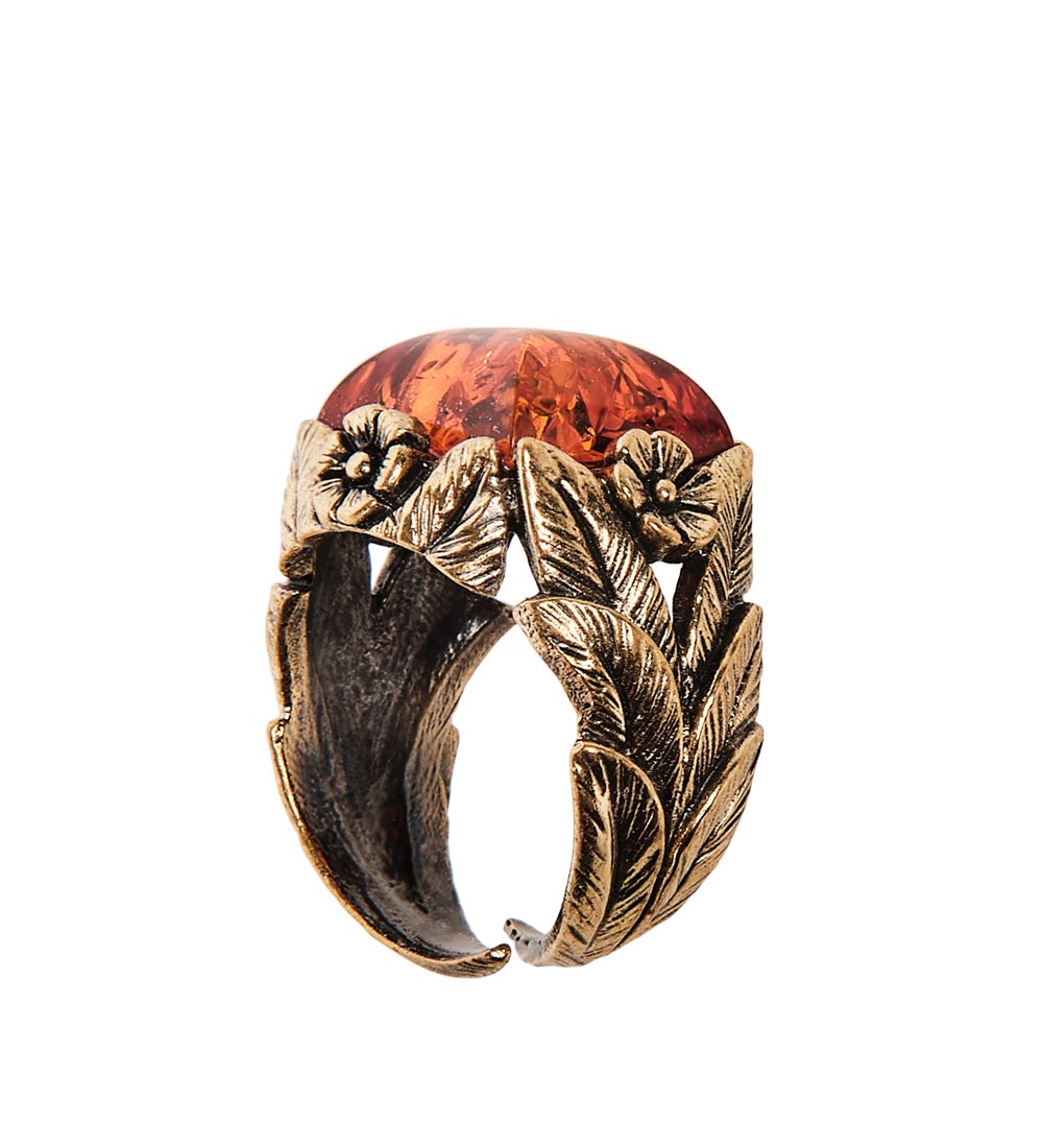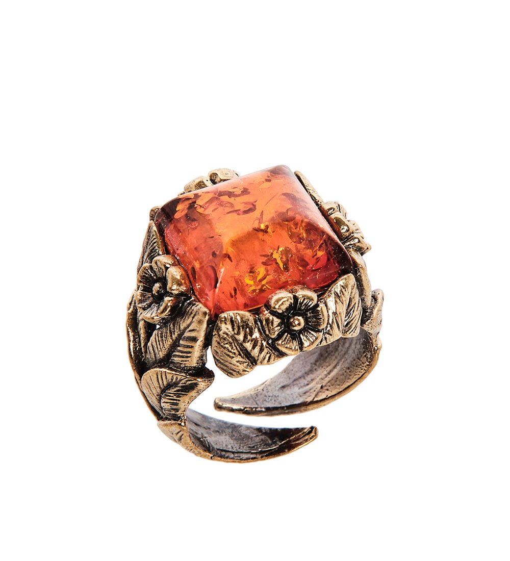 Am-2463 кольцо лесное очарование (латунь, янтарь)