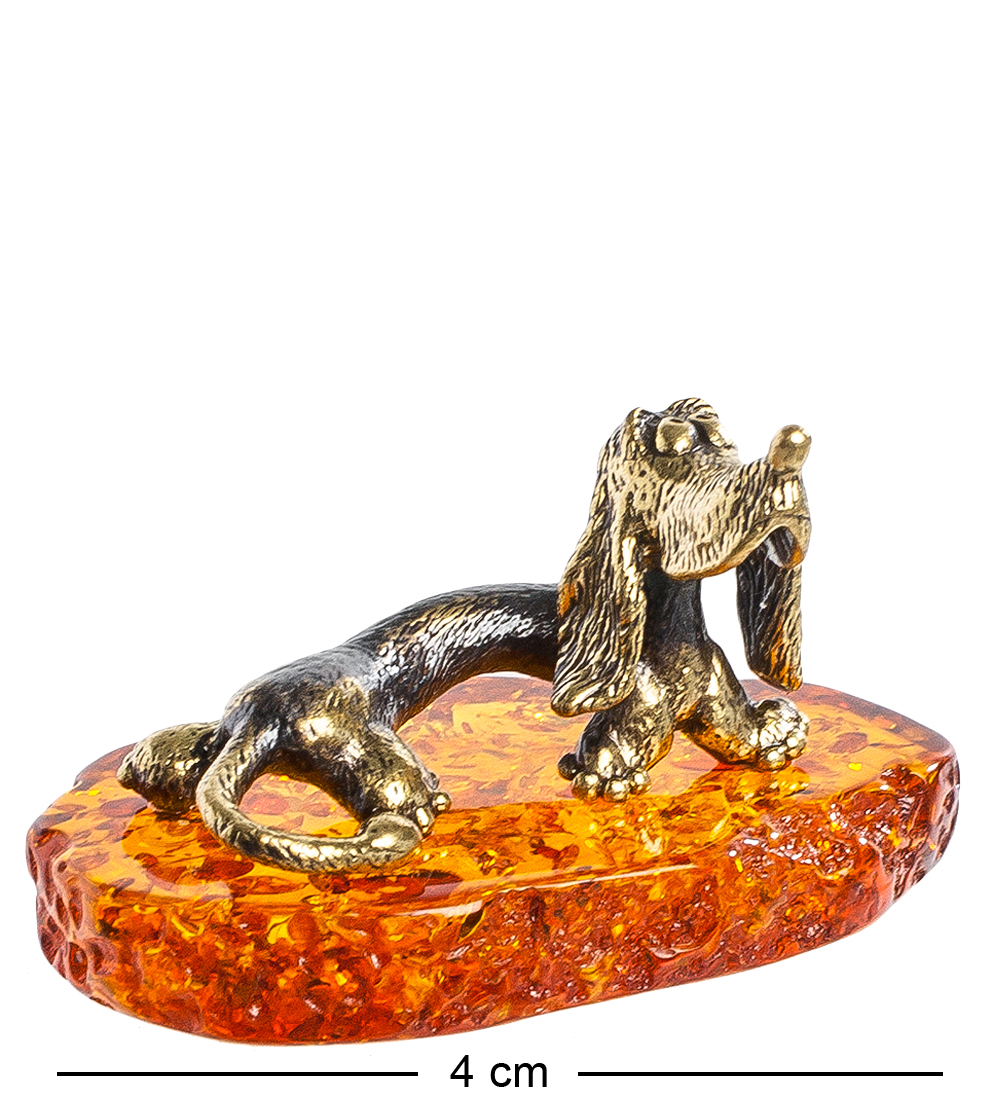 Am-214 фигурка такса (латунь, янтарь)