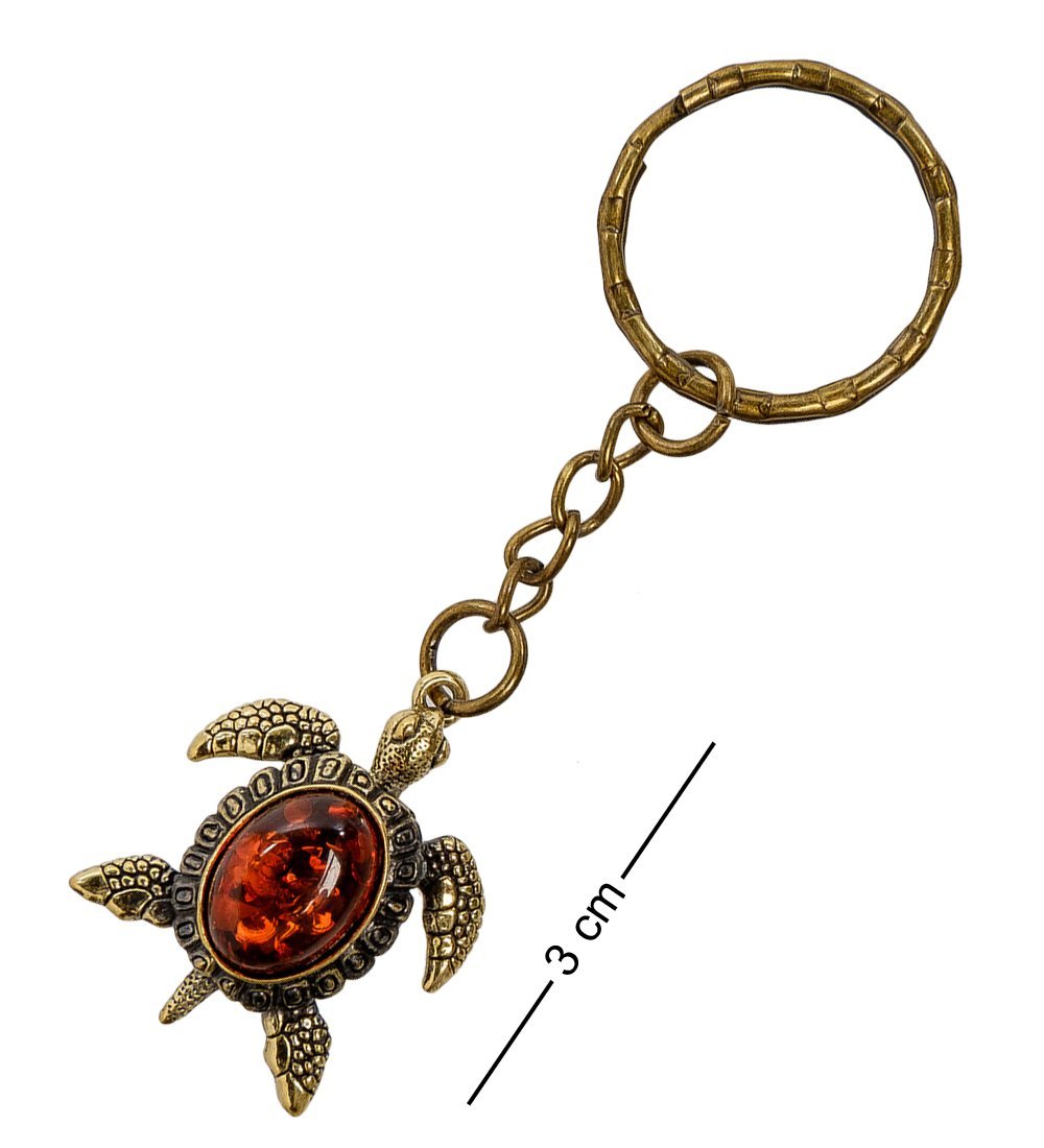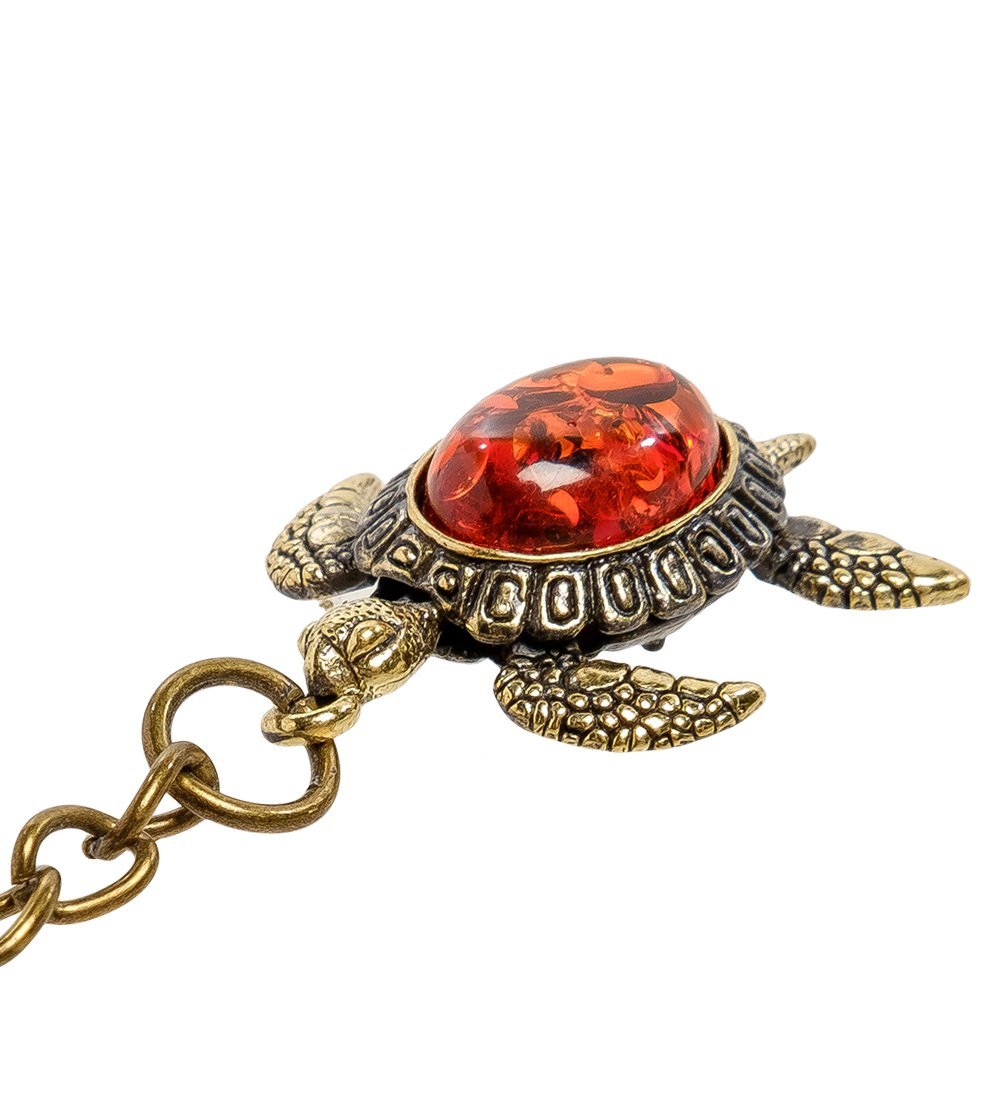 Am-2076 брелок черепаха живчик (латунь, янтарь)