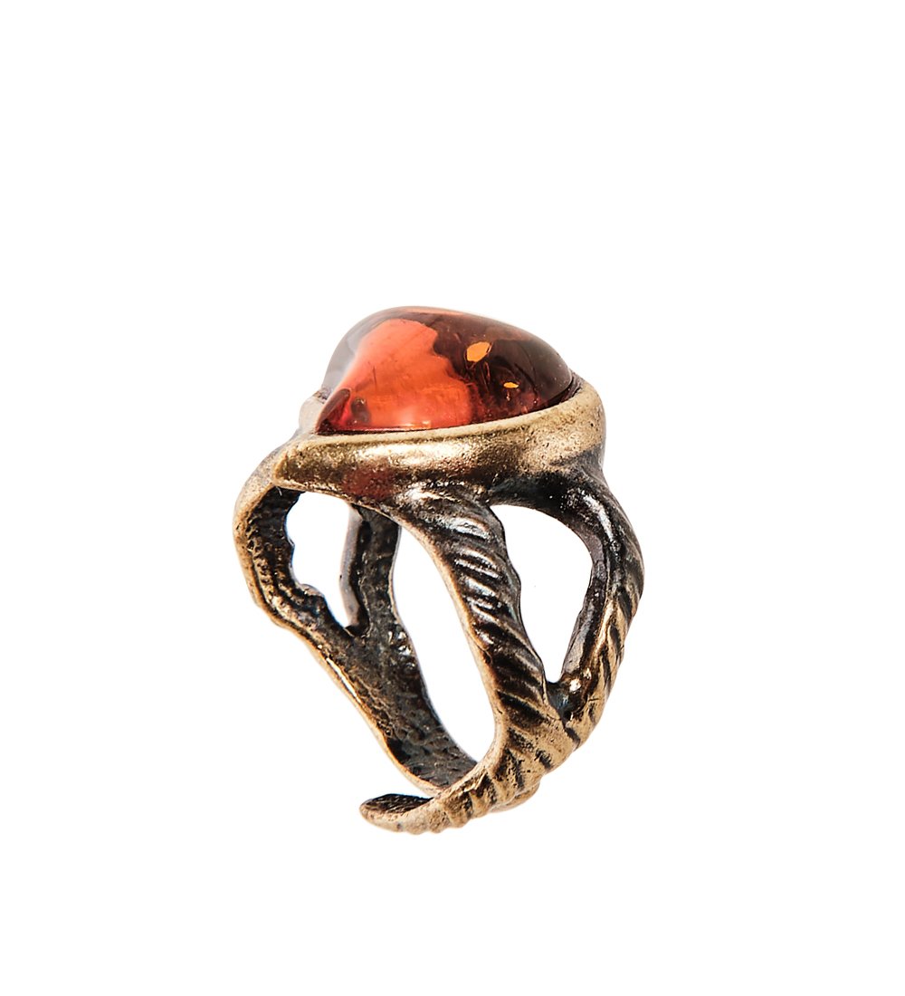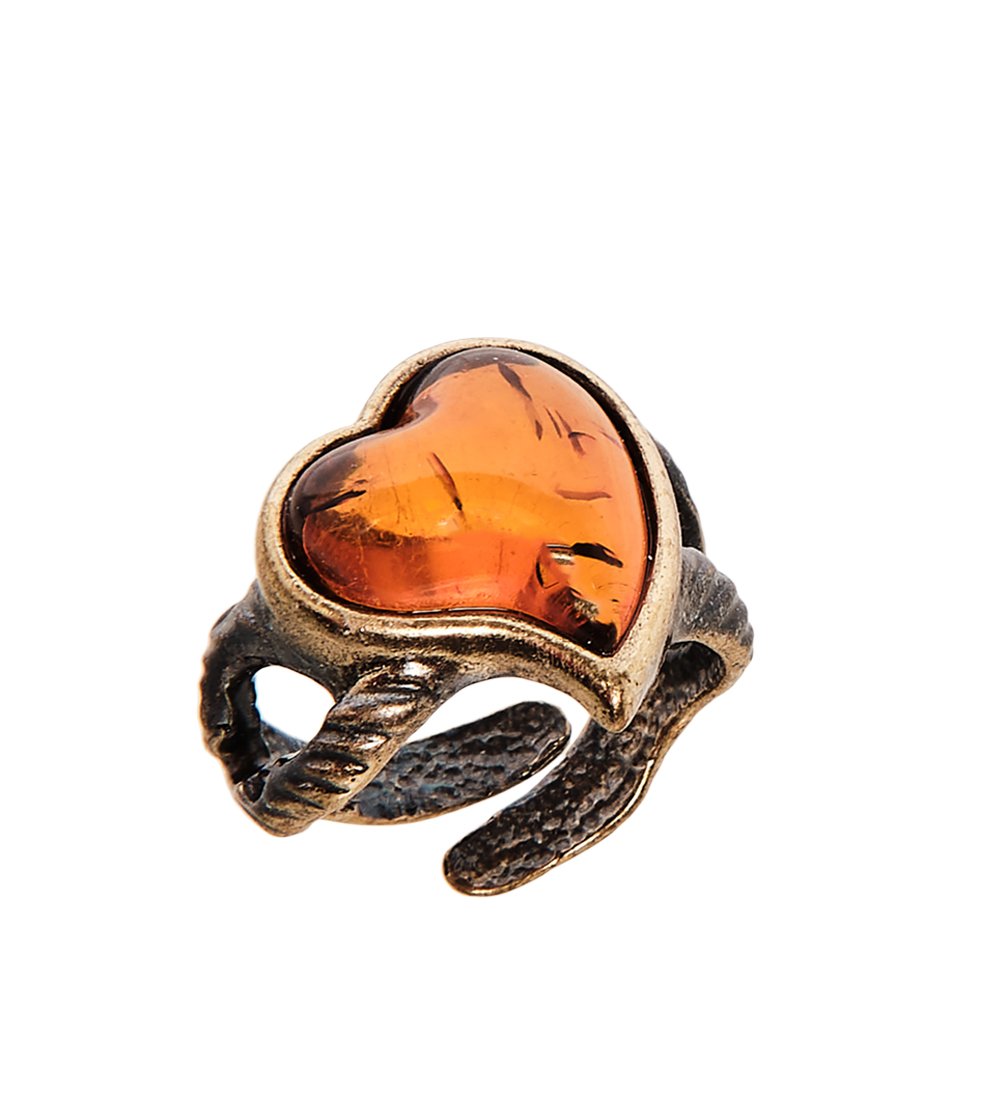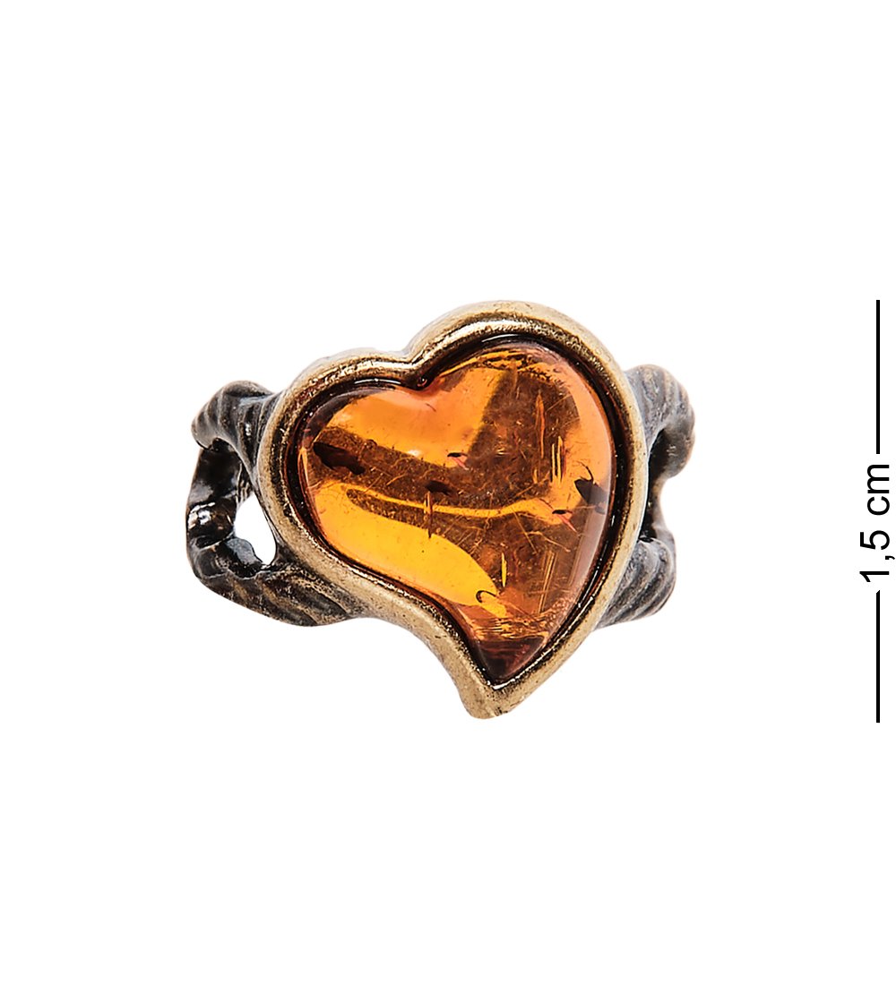 Am-2497 кольцо сердечко (латунь, янтарь)