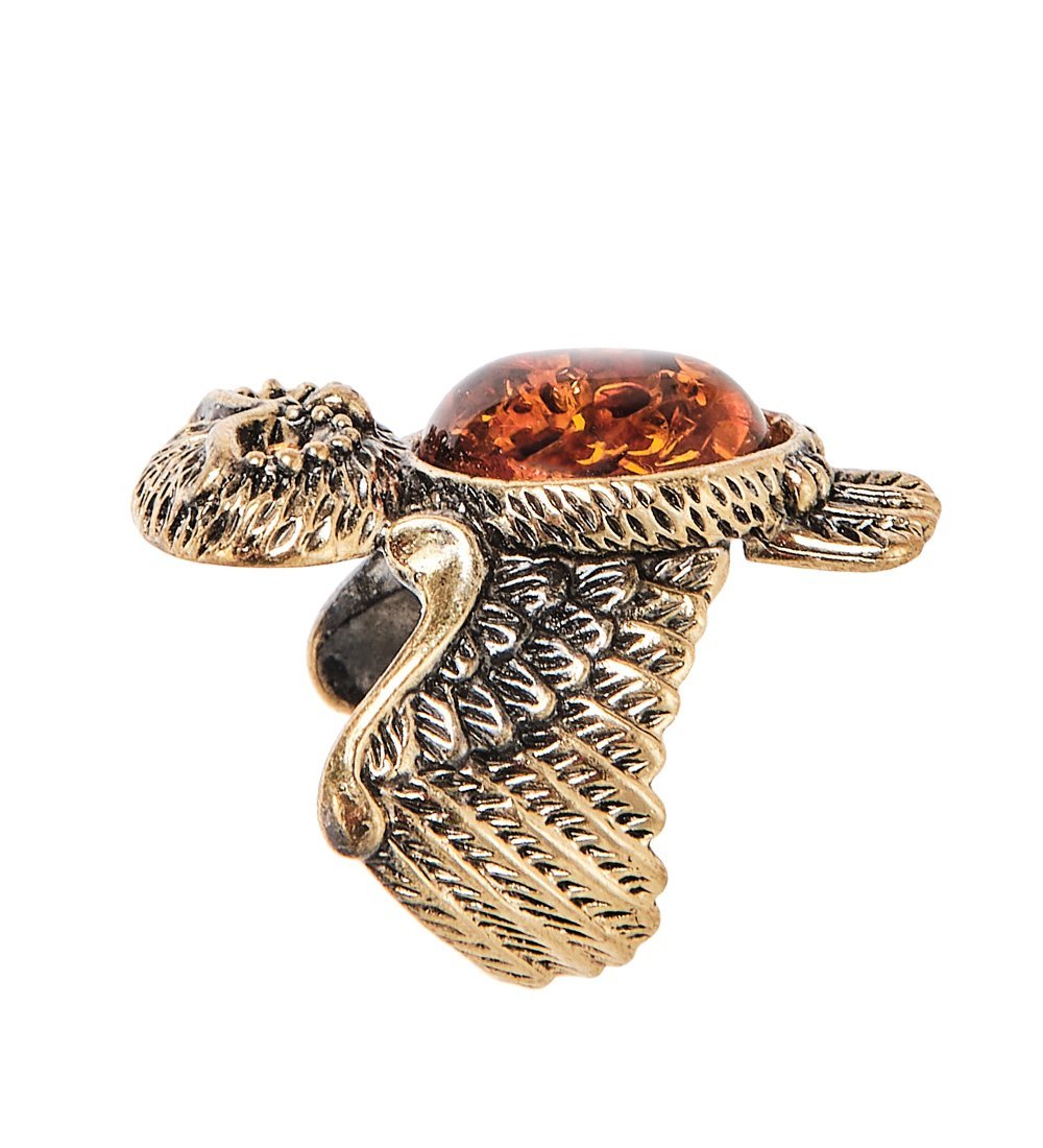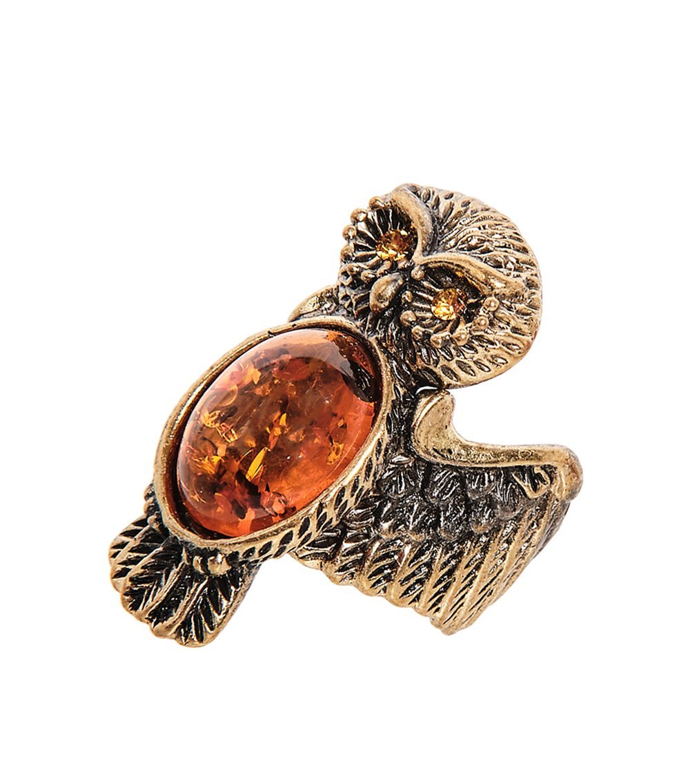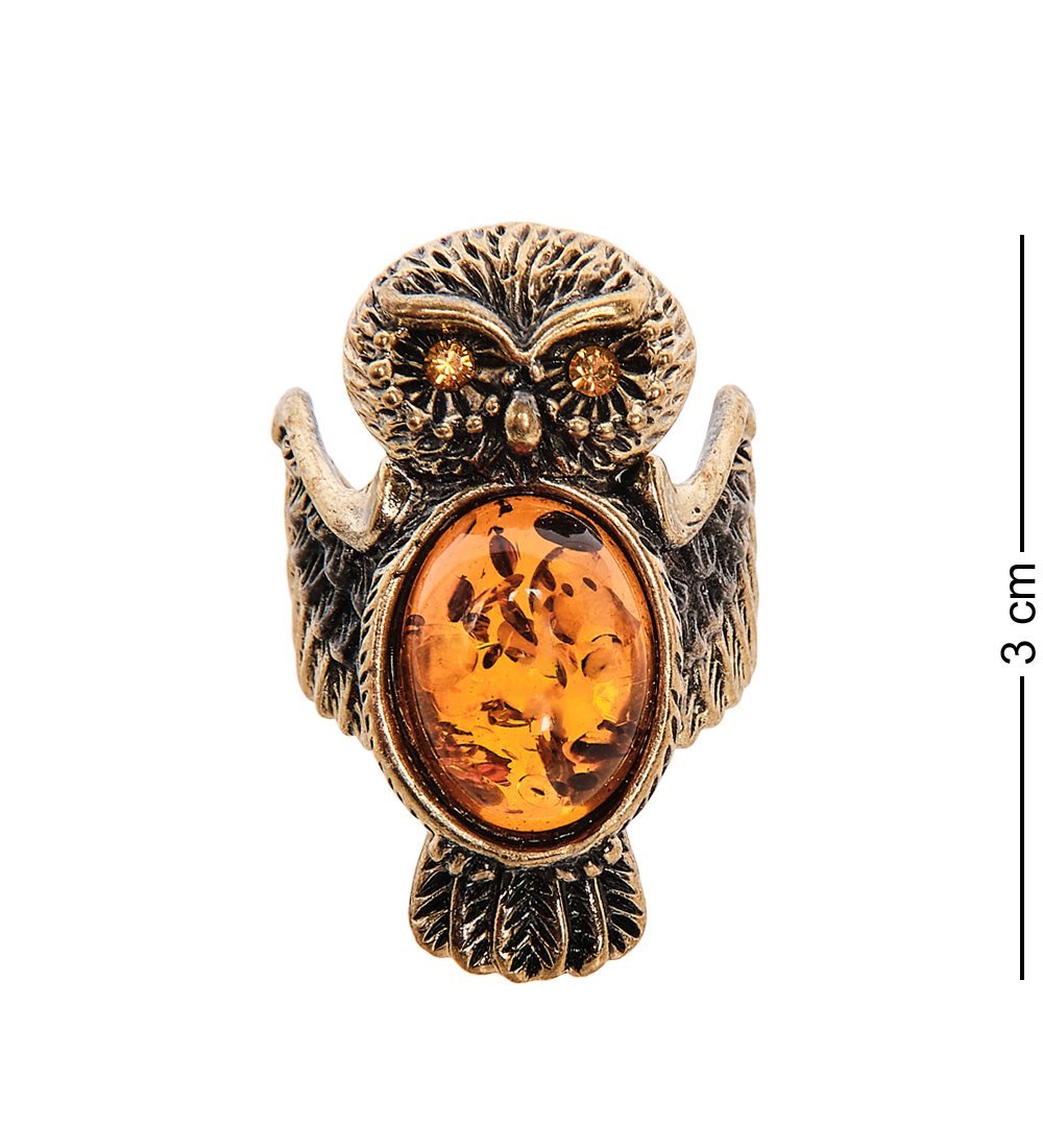 Am-2502 кольцо совушка (латунь, янтарь)
