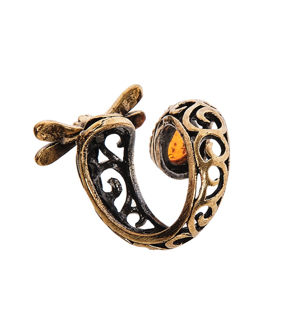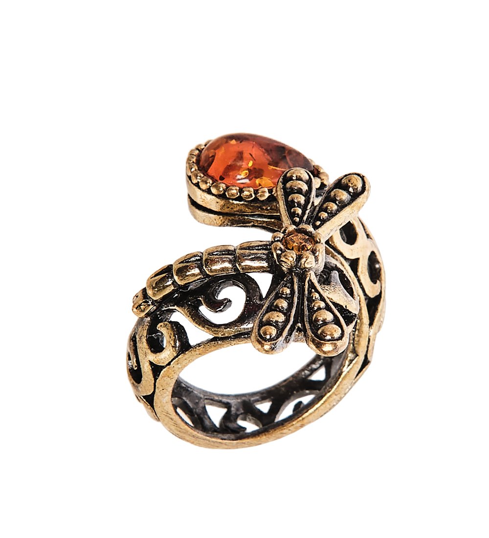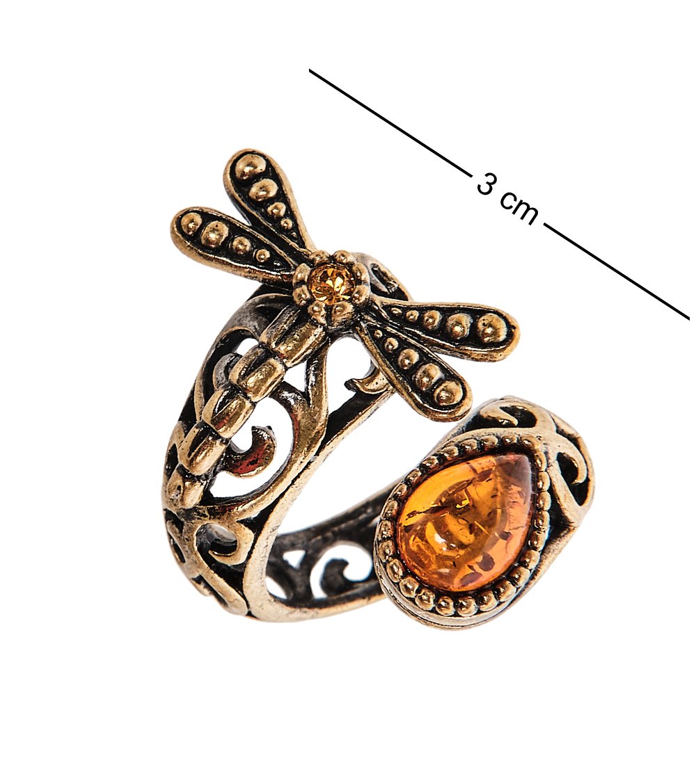 Am-2507 кольцо стрекоза (латунь, янтарь)