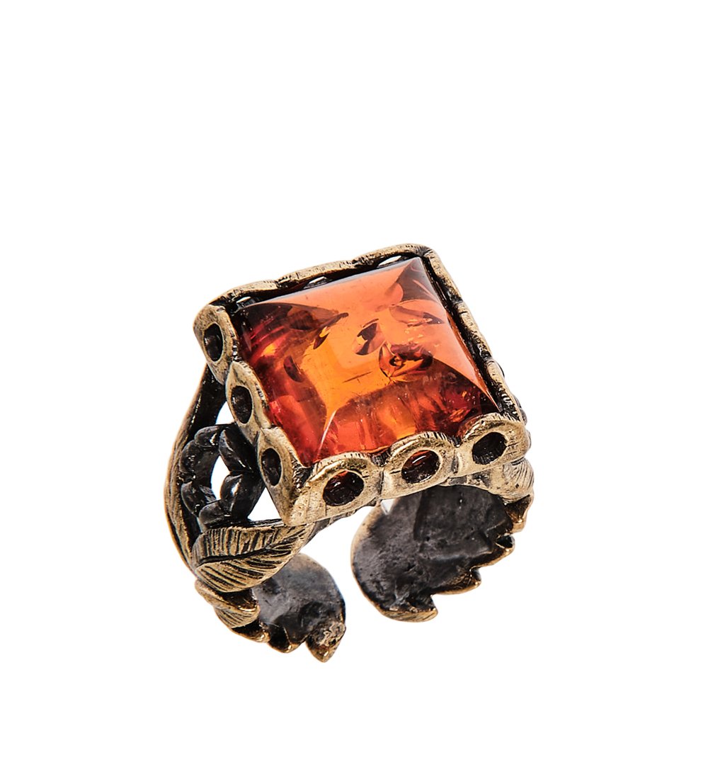 Am-2513 кольцо цезарь (латунь, янтарь)