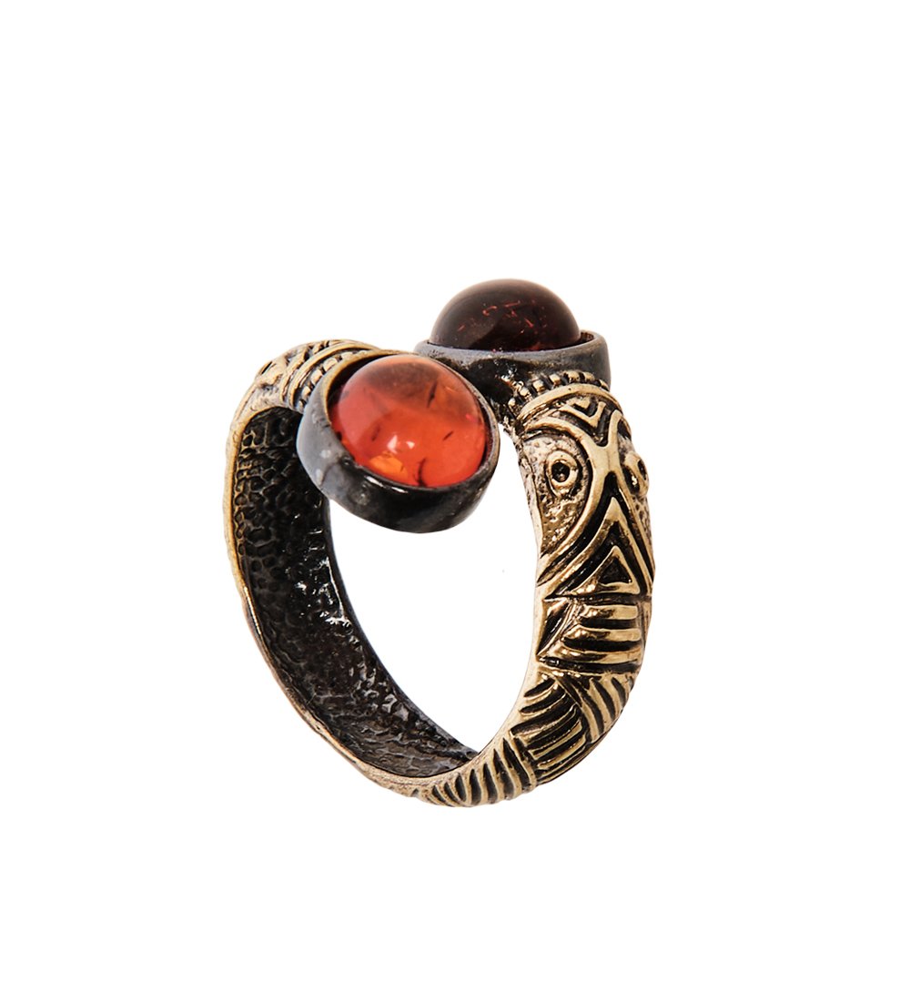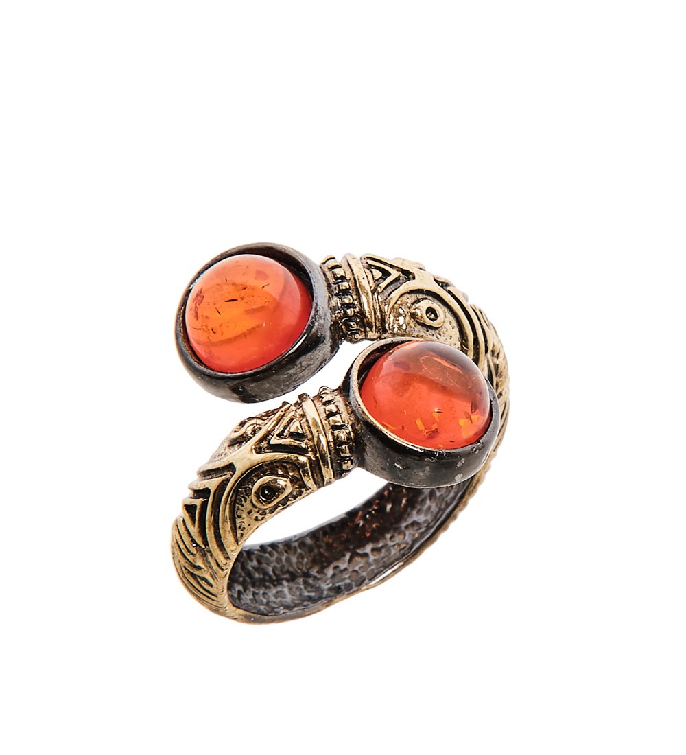 Am-2522 кольцо бесконечность (латунь, янтарь)