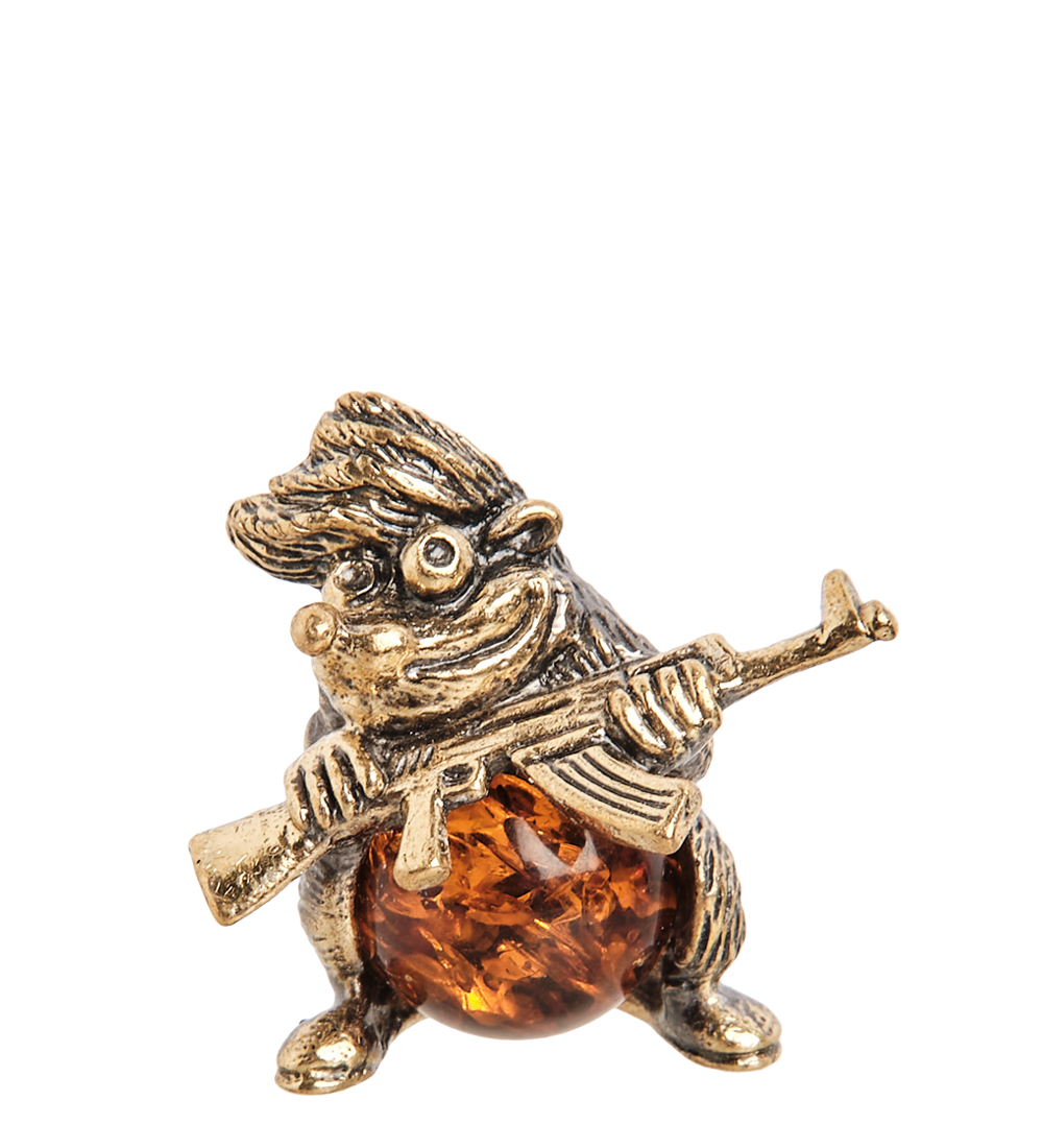 Am- 275 фигурка еж с автоматом (латунь, янтарь)