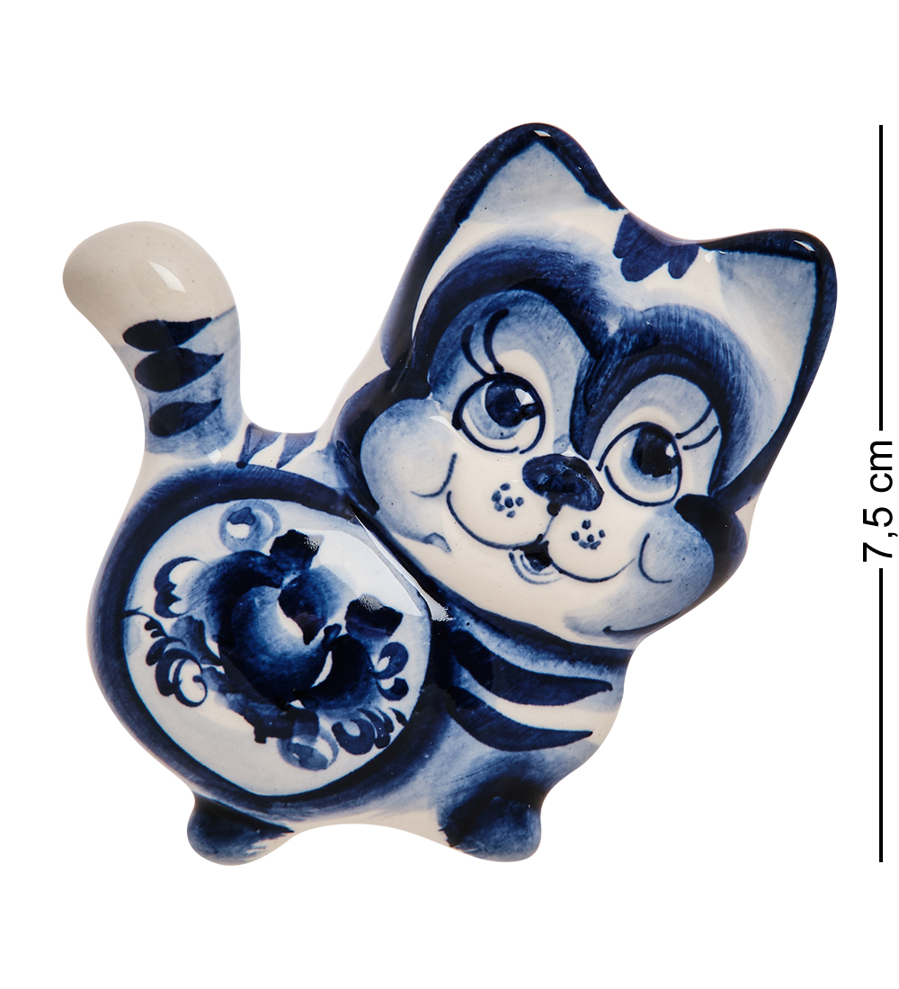 Гл-679 магнит кот-фантик (гжельский фарфор).