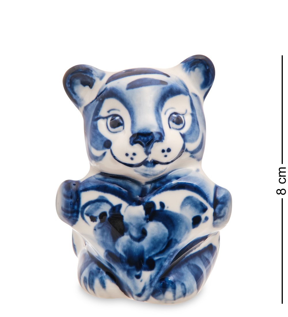 Гл- 37 фигурка тигренок с сердцем (гжельский фарфор)