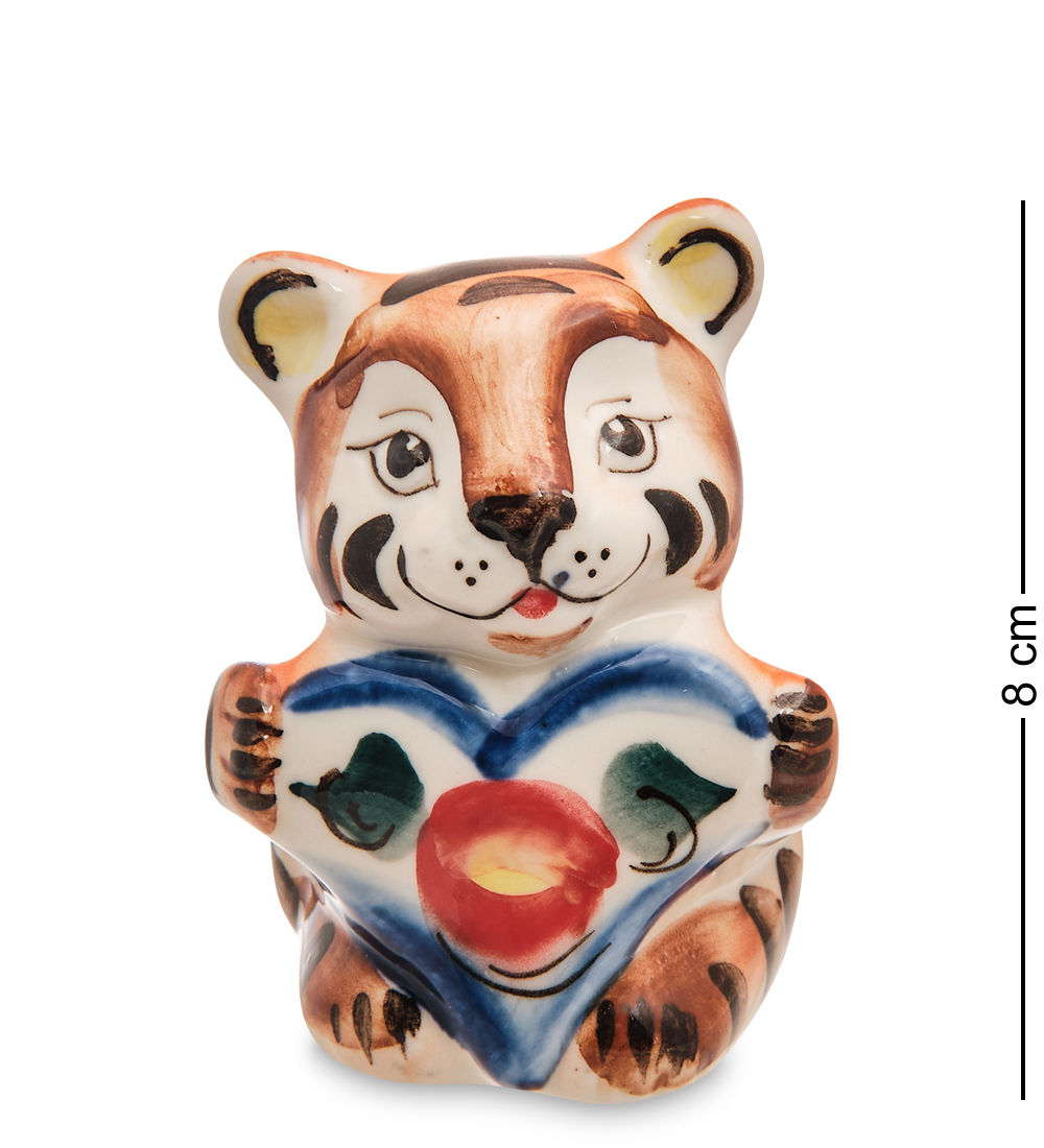 Гл- 38 фигурка тигренок с сердцем цв. (гжельский фарфор)