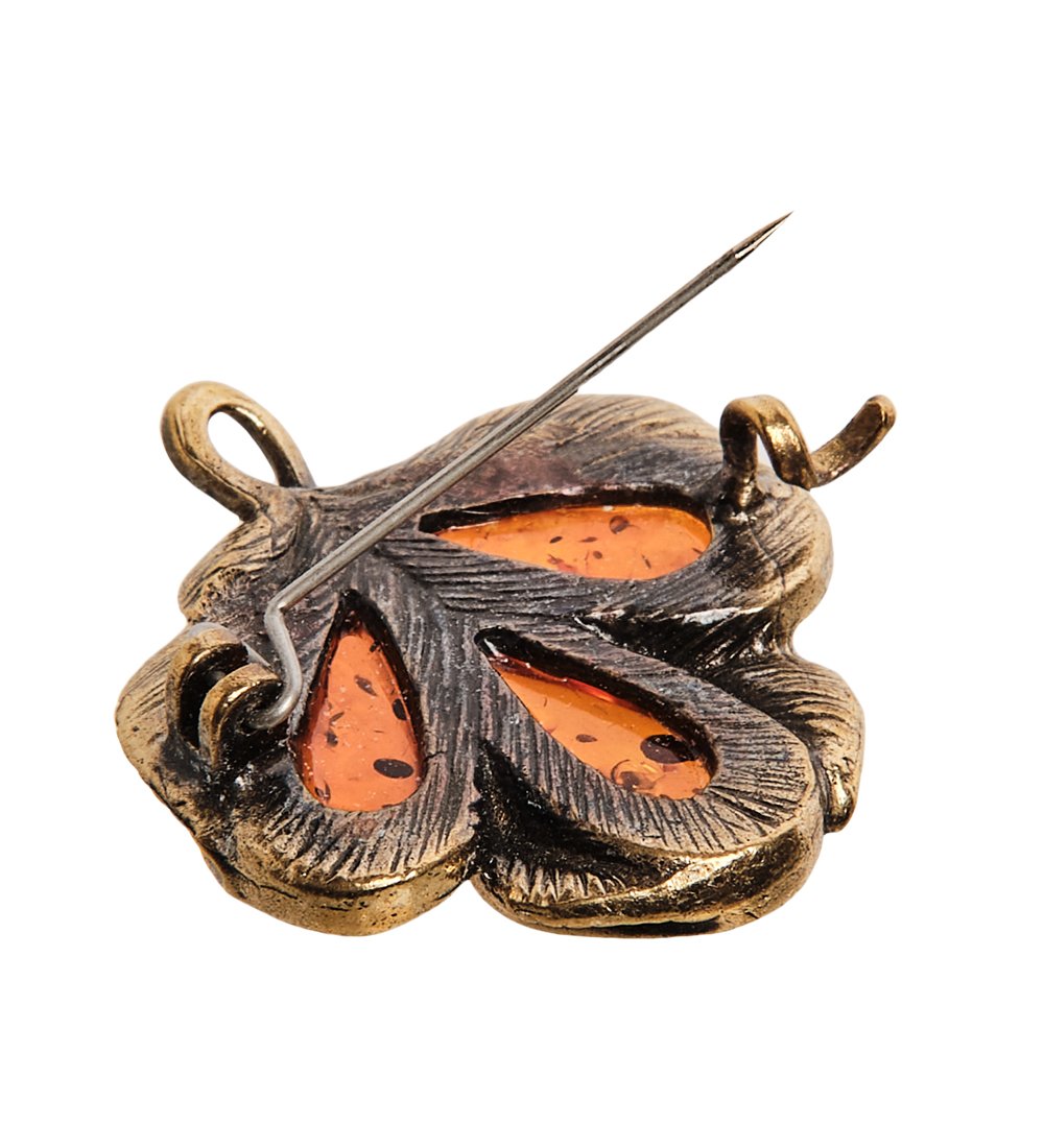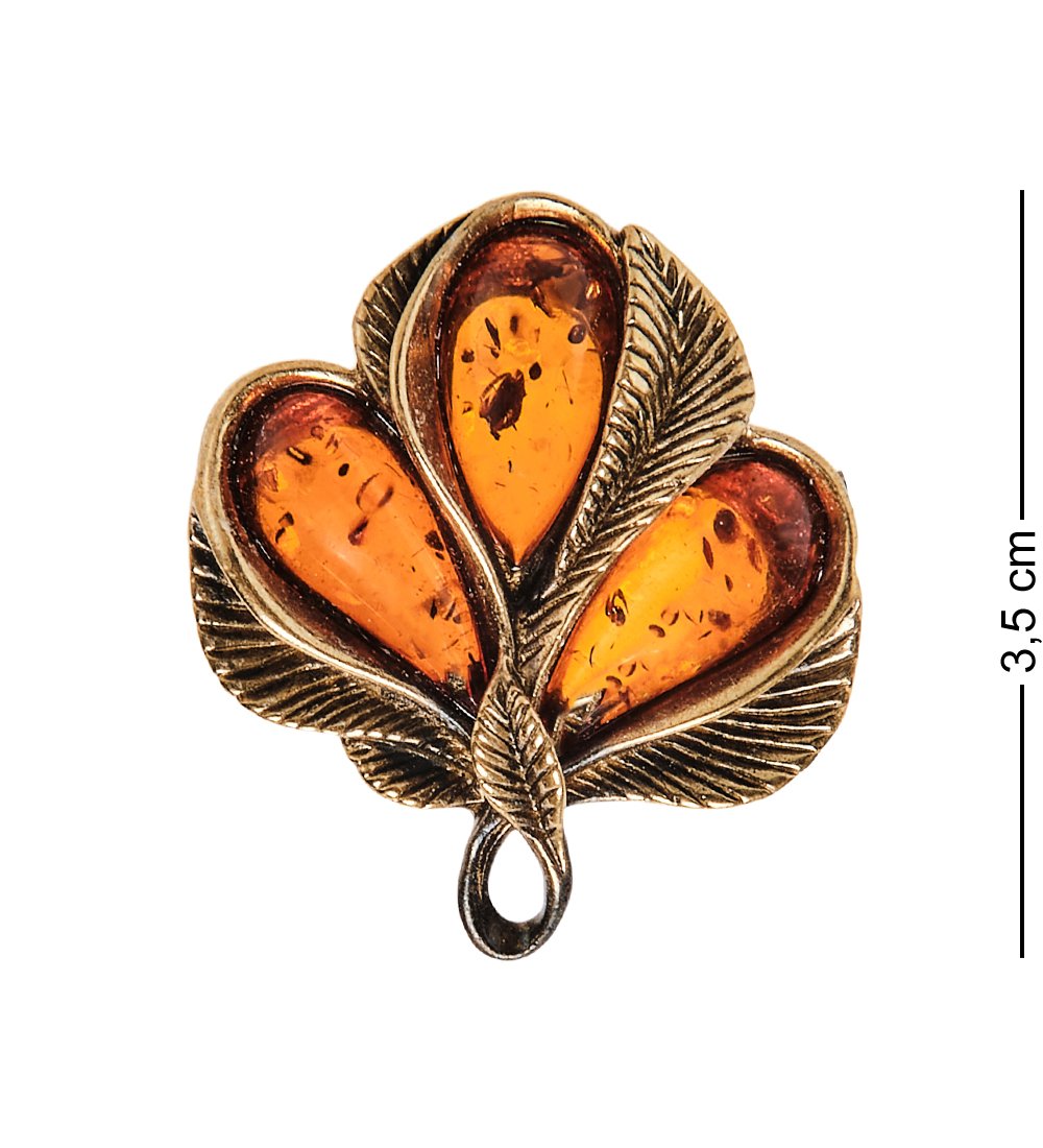 Am-2571 брошь «винтажный листик» (латунь, янтарь)