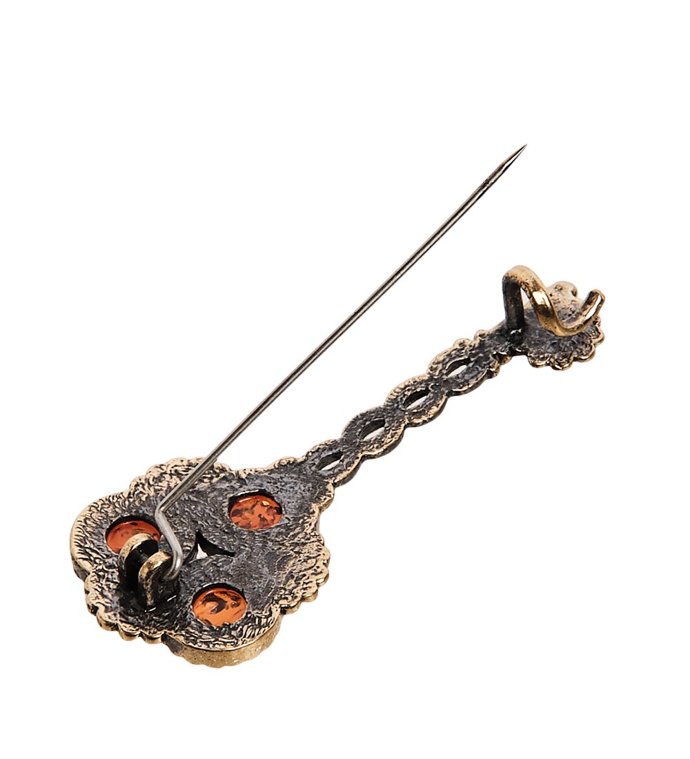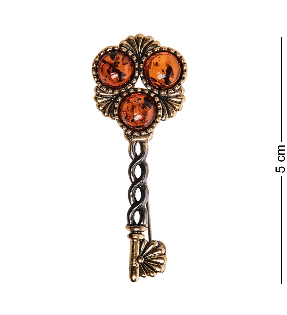 Am-2604 брошь «ключ в нарнию» (латунь, янтарь)