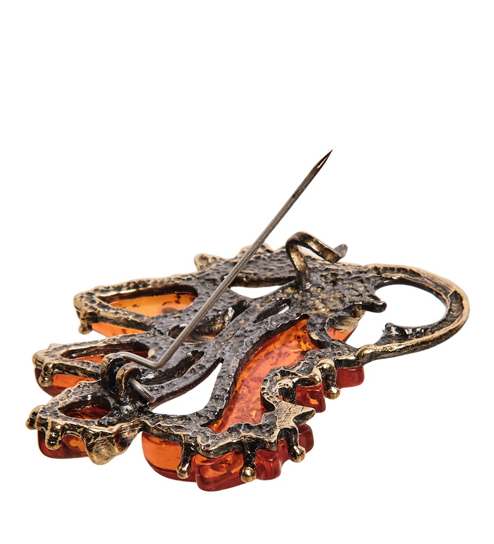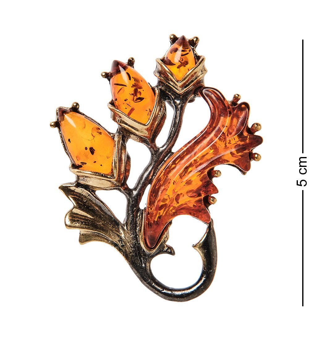 Am-2606 брошь «колокольчик трио» (латунь, янтарь)