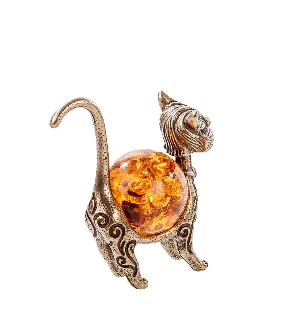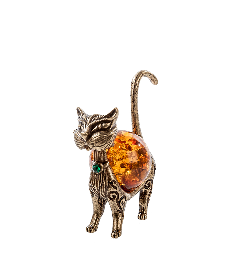 Am-384 фигурка кошка гламур (латунь, янтарь)