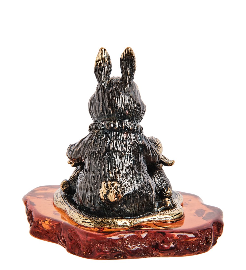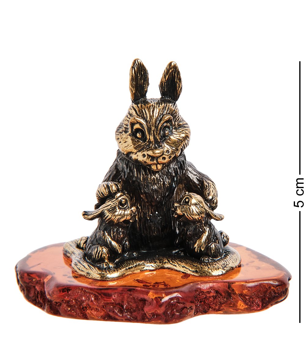 Am-2724 фигурка «зайчиха с зайчатами» (латунь, янтарь)