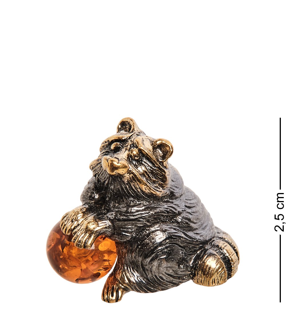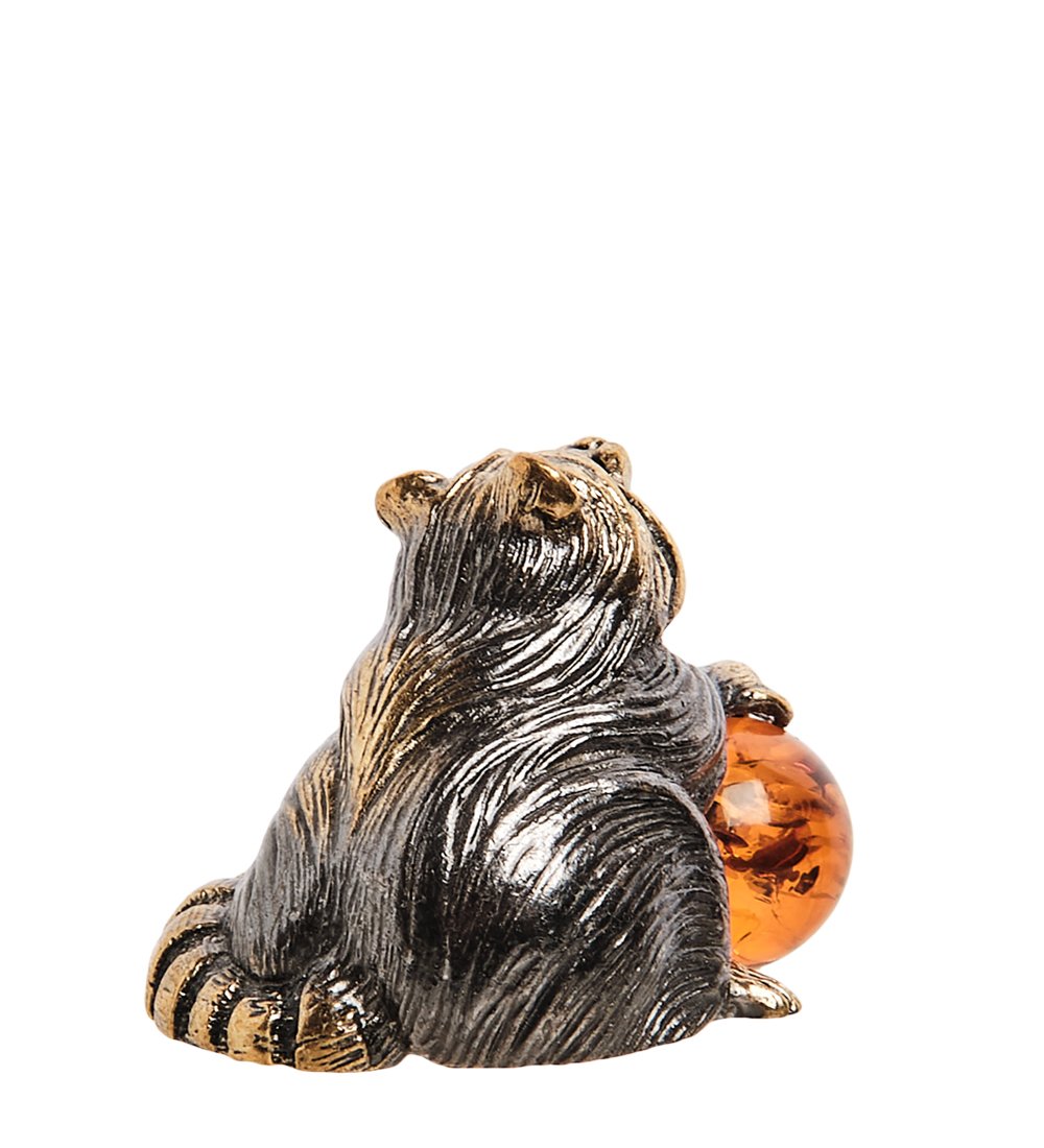 Am-2798 фигурка «енот-полоскун» (латунь, янтарь)