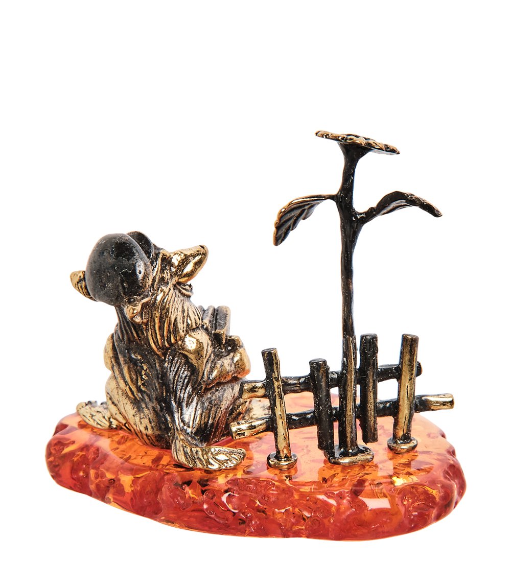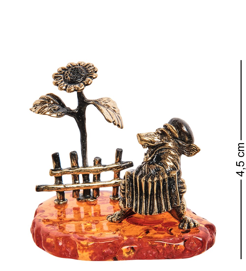 Am-2812 фигурка «волк с гармошкой у подсолнуха» (латунь, янтарь)