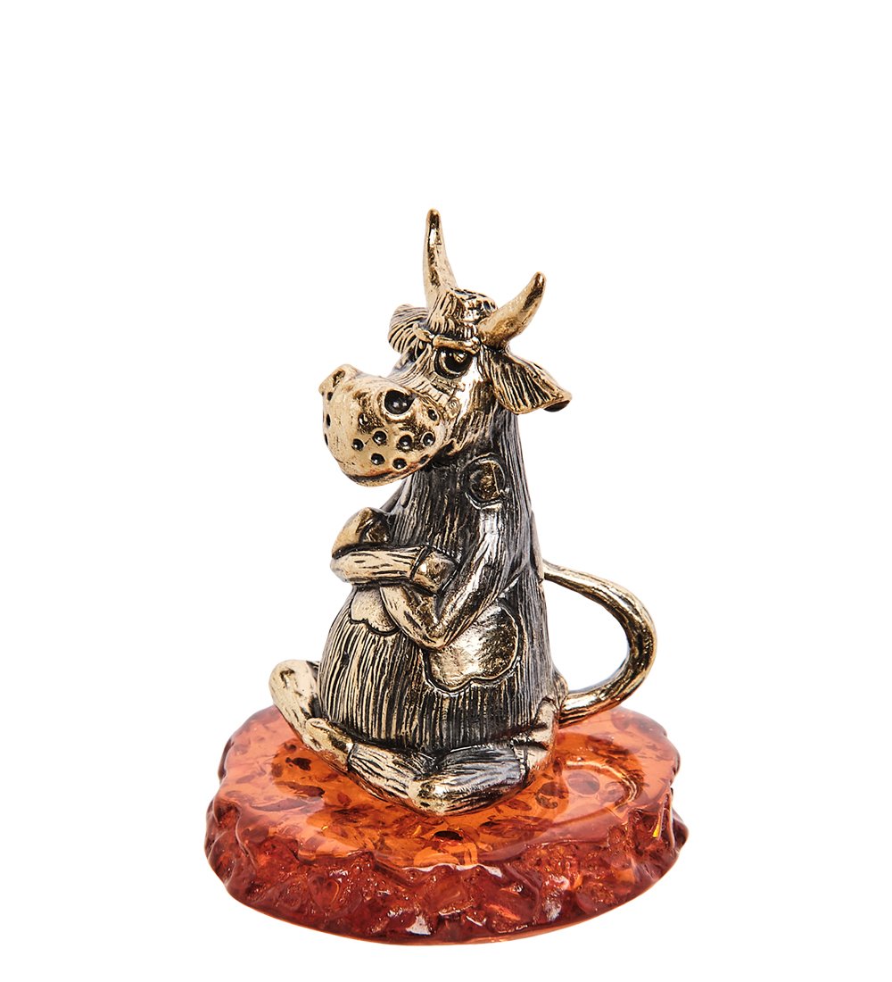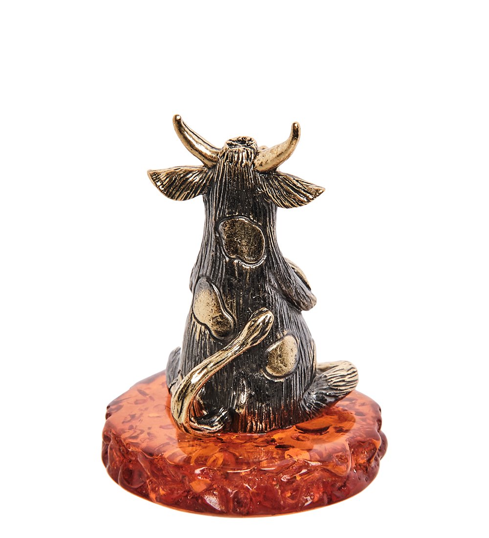 Am-2827 фигурка «бык» (латунь, янтарь)