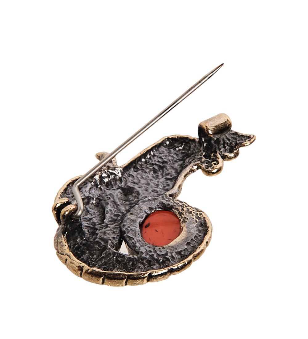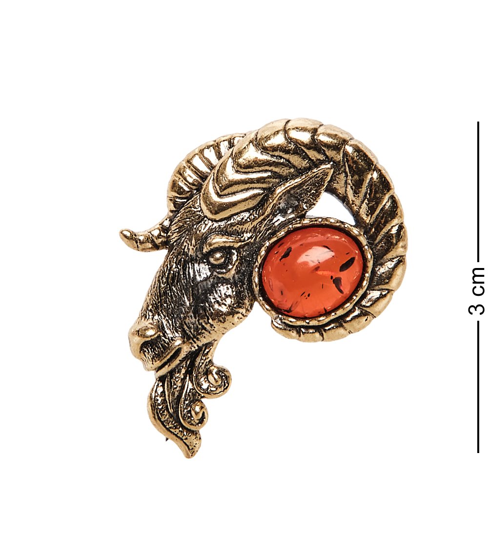 Am-2851 брошь «знак зодиака-овен « (латунь, янтарь)