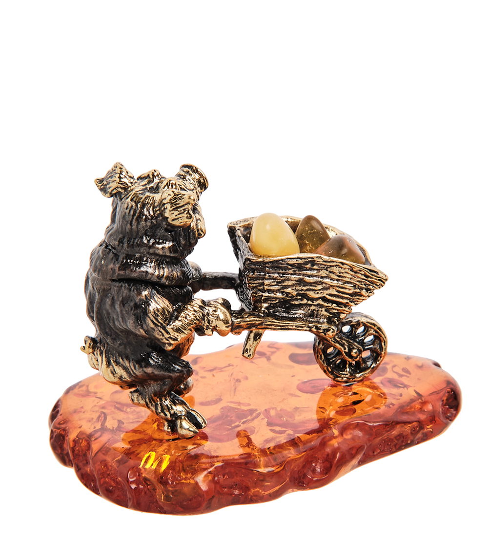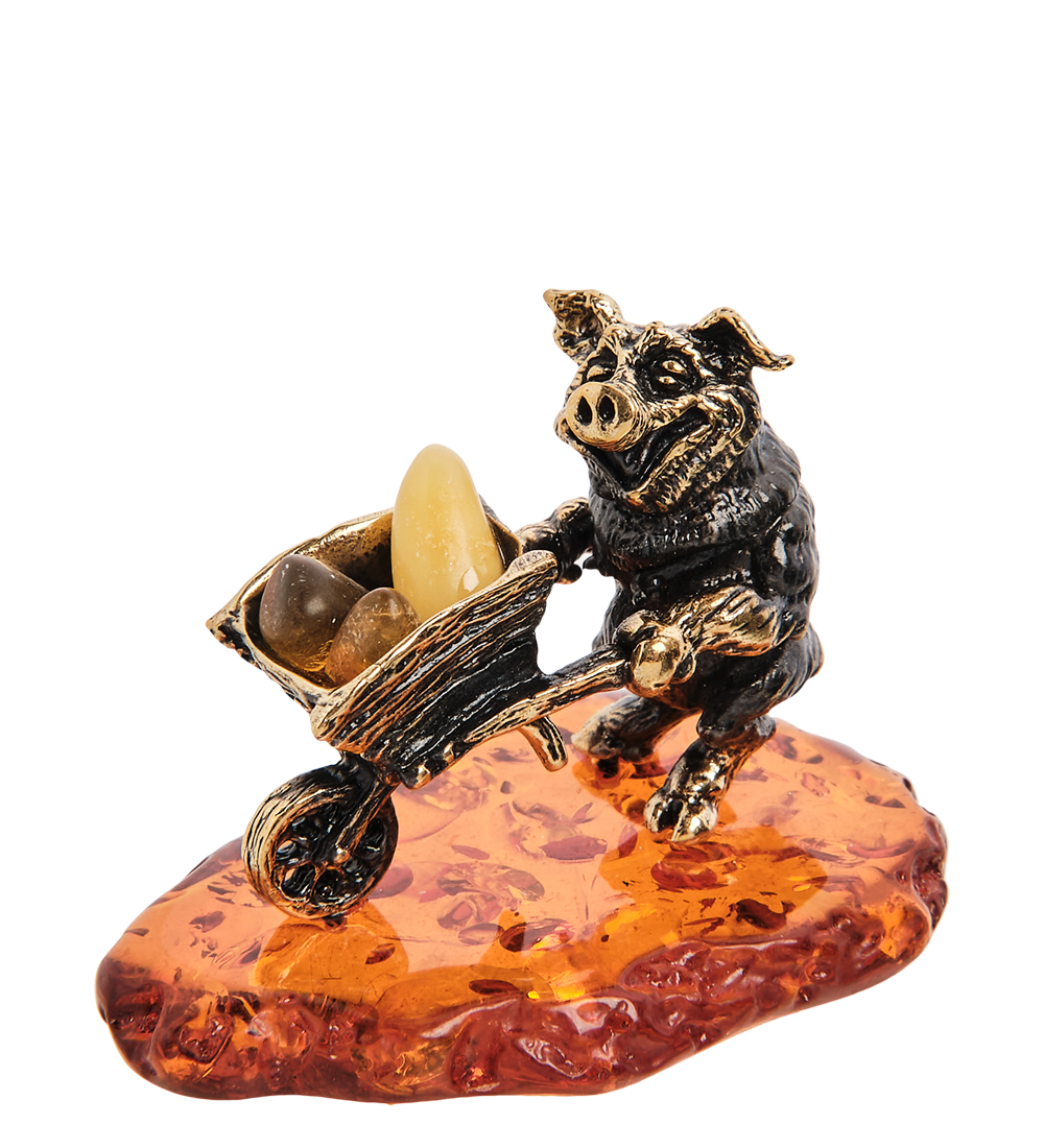 Am-2962 фигурка «поросенок золотоискатель» (латунь, янтарь)