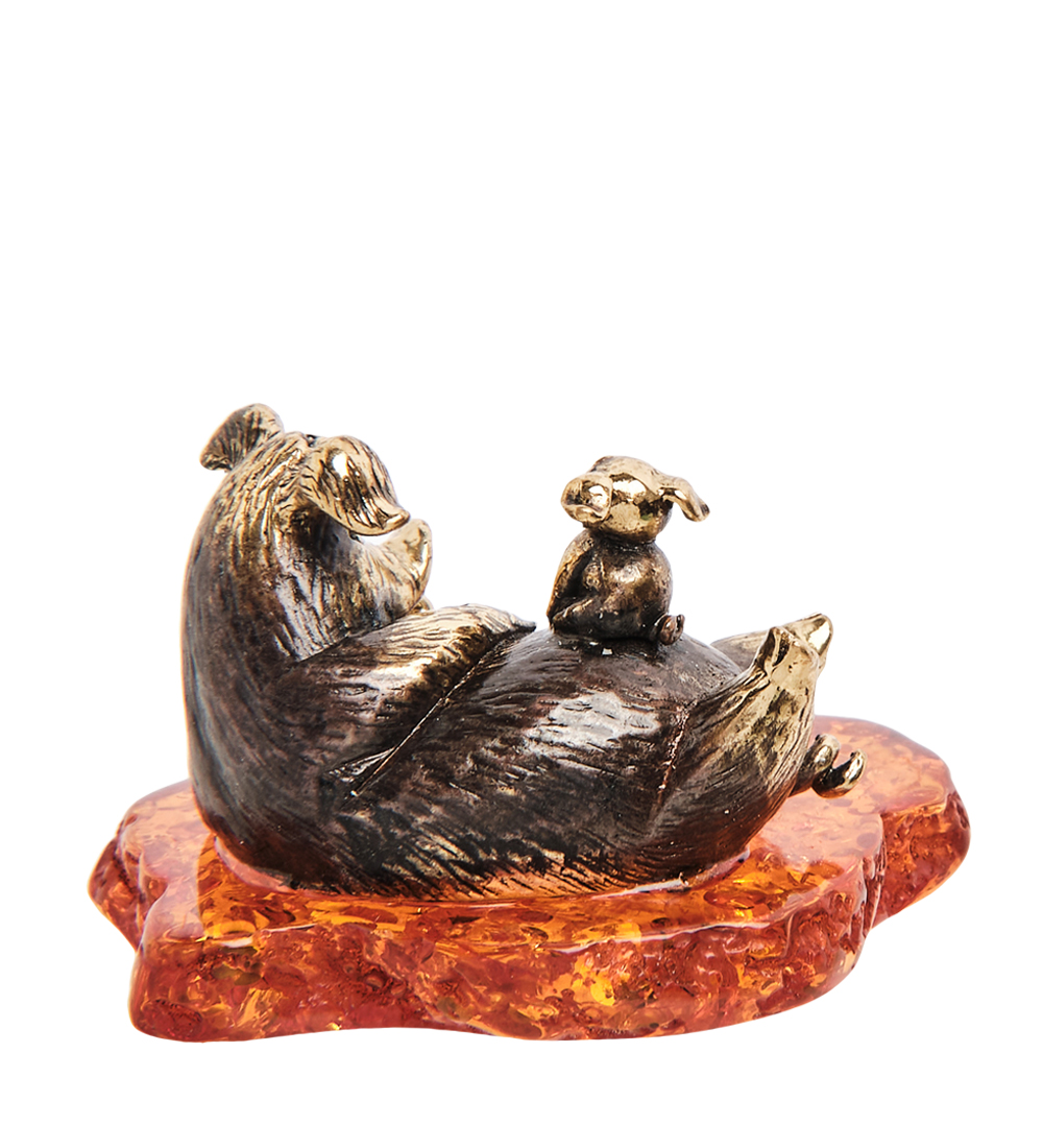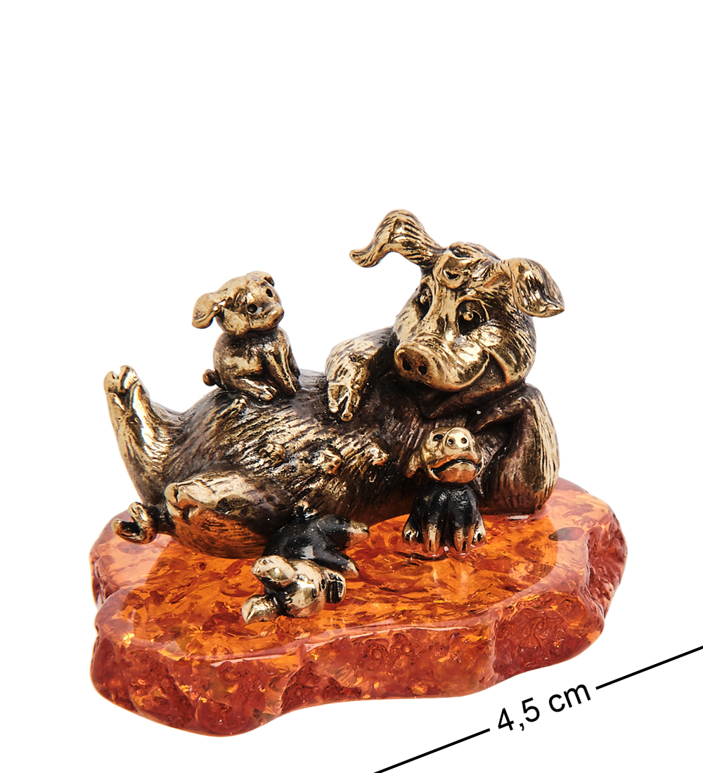 Am-2964 фигурка «поросята с мамой» (латунь, янтарь)