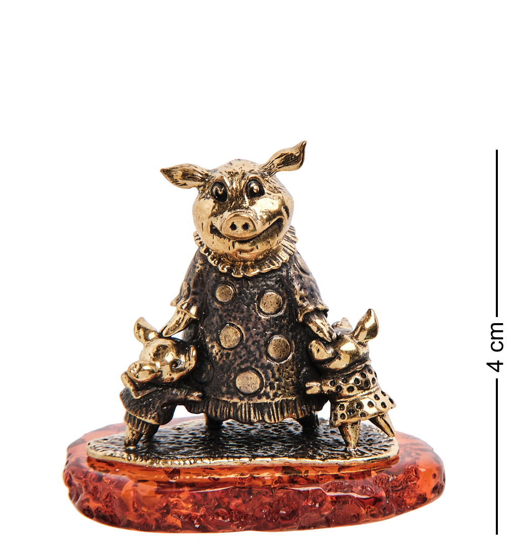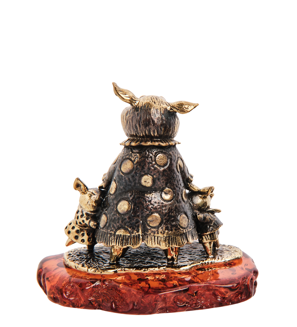 Am-2965 фигурка «поросячья счастливая семья» (латунь, янтарь)